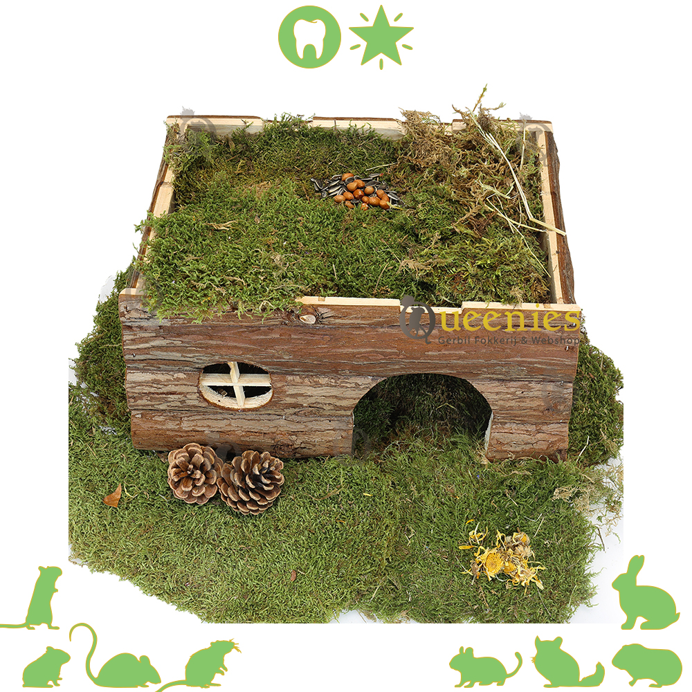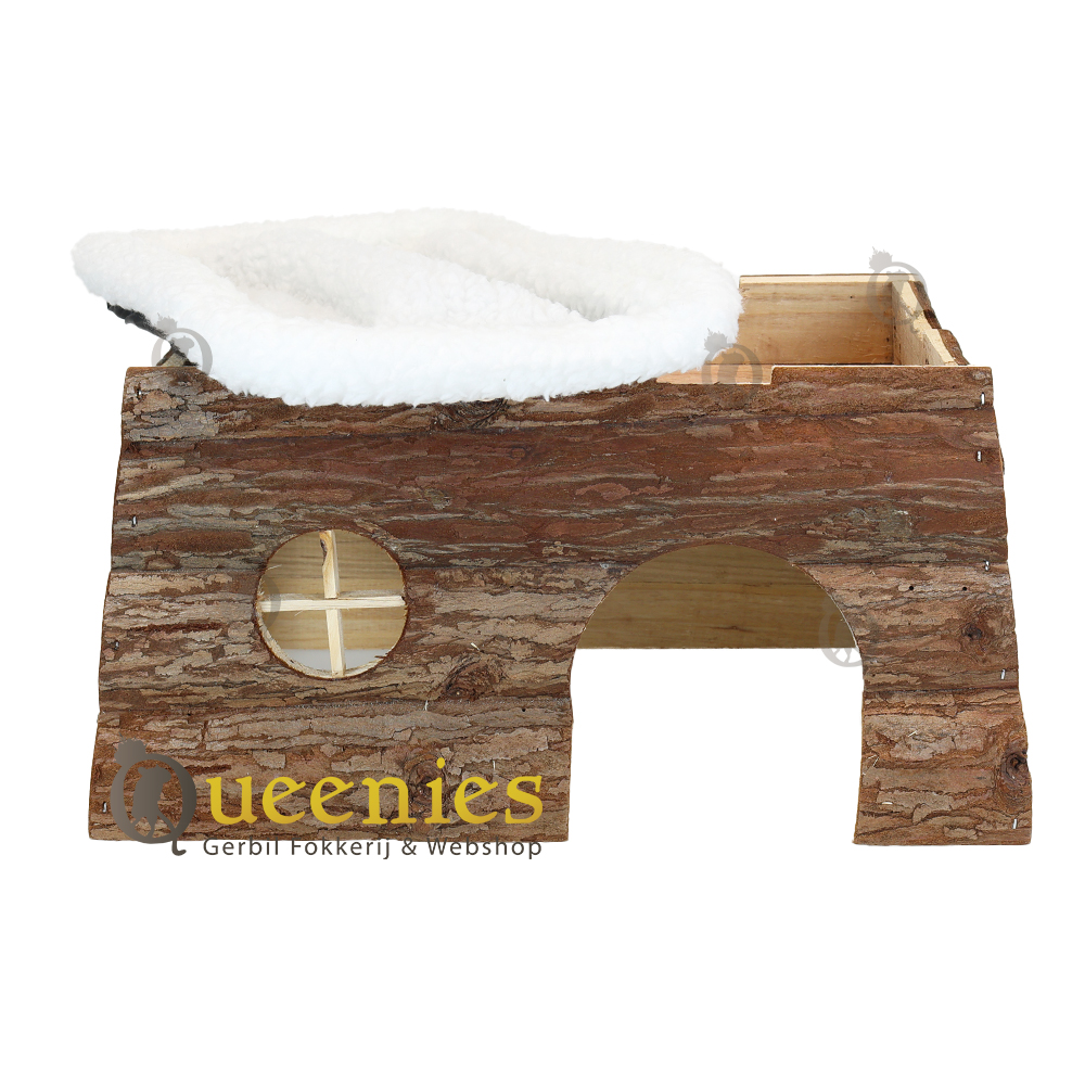Huisje Tilde is oor de verwende knaagdieren met heerlijk zacht en comfortabel extra zachte relax plaats op het dakterras gemaakt van schapenvacht. Deze schapenvacht mand is uitneembaar en wasbaar op 20 tot 40 graden in de wasmachine. Het ruime daktaras biedt voldoende plek voor het grote knaagdier zoals Ratten, Chinchilla's, grote groep muizen of zelfs een klein dwergkonijn. Binnenin het huisje is er ook voldoende plek voor 2 Chinchilla's of 2 - 4 Degoes.
