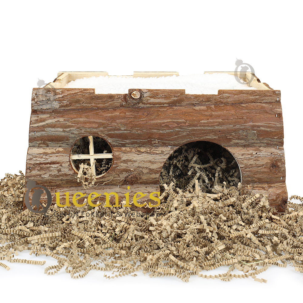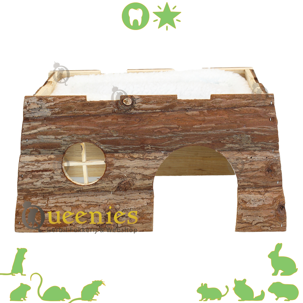 Dit Cinchilla huisje is gemaakt van onbehandeld hars vrij schorshout. Wij en onze leveranciers hechten veel waarde aan de gezondheid van uw Chinchilla. Daarom zijn onze knaagdier huisjes gemaakt van naaldhout zonder harskanalen, aangezien hars giftig kan zijn voor sommige dieren wordt het hout zorgvuldig geselecteerd zodat er geen schorshout met harskanalen gebruikt worden. Het hout wat wij gebruiken, harst niet en wordt bovendien grondig gedroogd alvorens te worden verwerkt. Ook onze lijm die wordt gebruikt is niet giftig voor dieren.