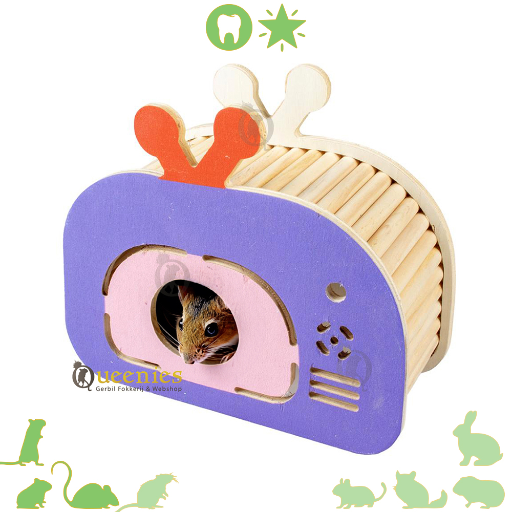Het TV Speelhuis is een super leuke toevoeging aan uw Terrarium / Gerbilarium. Vaak worden Knaagdier huisje in de vorm van een echt huis nagemaakt. Maar met dit TV Speelhuis ziet het er niet alleen leuk uit, maar is het ook een uniek ontwerp. Het TV Speelhuisje is makkelijk schoon te maken. Ook is het gemaakt van natuurlijk bewerkt hout. Hierdoor kunnen Knaagdieren zonder problemen aan het huisje Knagen.