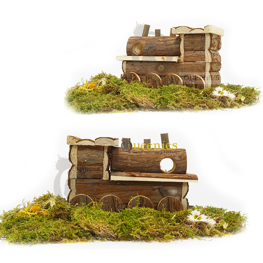 Deze Locomotief is gemaakt van onbehandeld schorshout zonder hars kanalen. Hars is giftig. Knaagdier speelgoed mag nooit gemaakt zijn van hout wat hars in zich heeft. Bijvoorbeeld ceder hout.