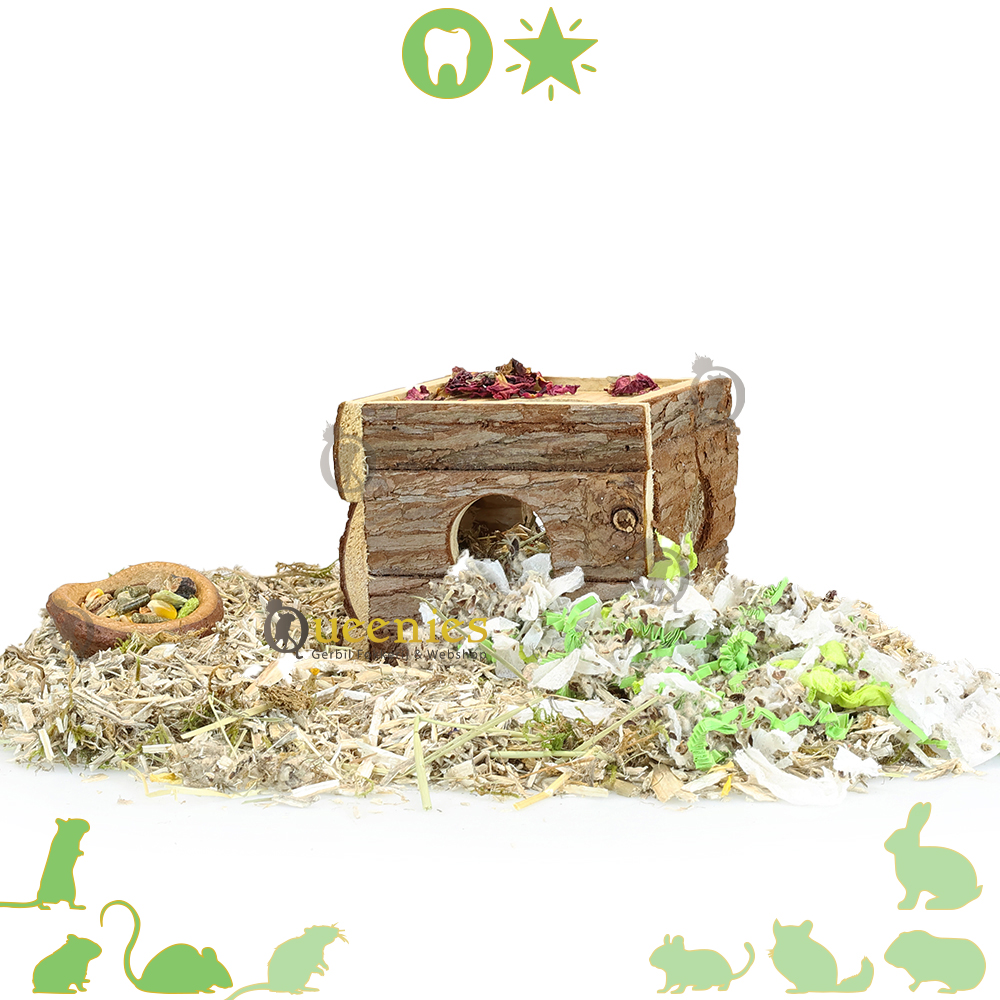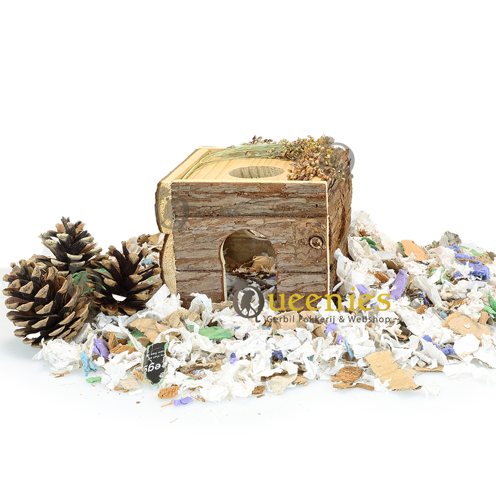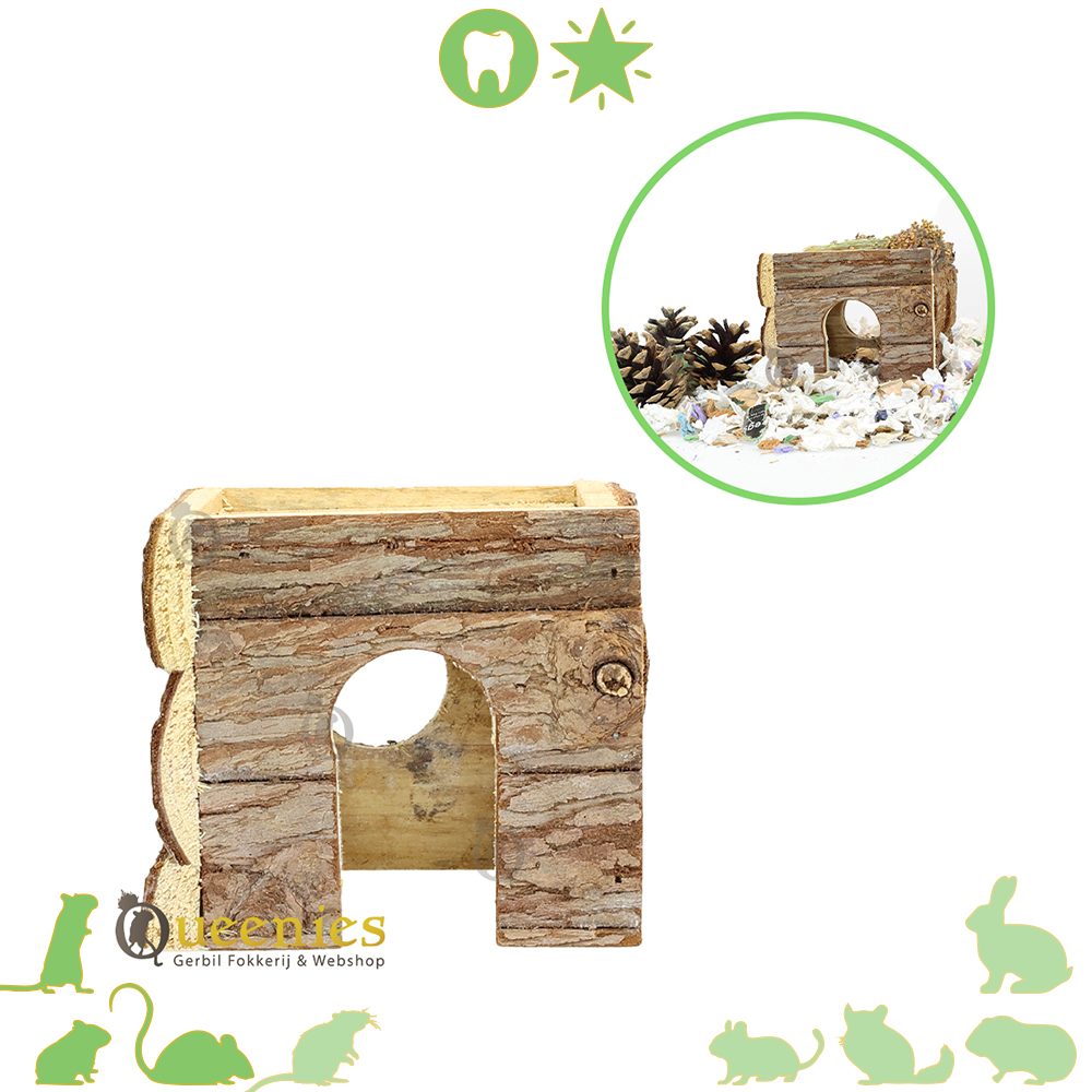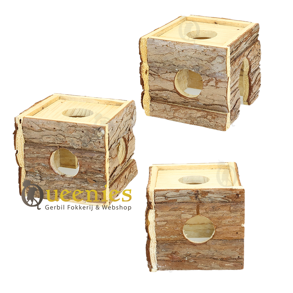 Dit leuke Knaagdierhuis vierkant 12 cm heeft een vierkante vorm met meerdere ingangen voor natuurlijke verkenningsruimte wat Knaagdieren graag doen als dagelijkse dagbesteding. Gaten die gebruikt kunnen worden als ingangen maar ook als uitgang , gemaakt van hout. Kleine Knaagdieren zoals Gerbils, Muizen en Hamsters kunnen gebruik maken van de meerdere openingen om in het huisje in te kruipen. Het Knaagdierhuisje in ideaal voor Gerbils om in te schuilen, spelen en slapen. Gerbils kunnen ook makkelijk op het huisje klimmen en op verkenning uitgaan.