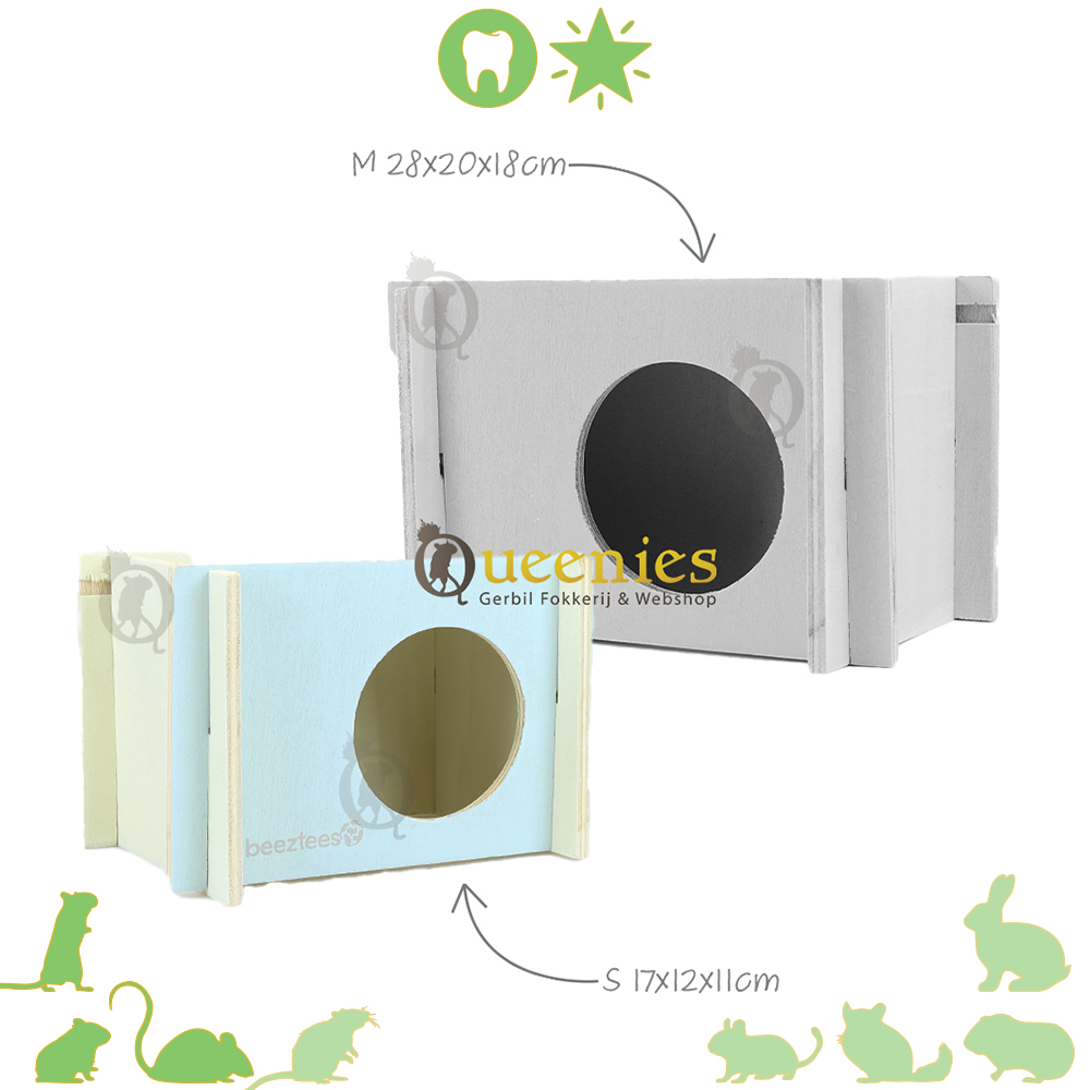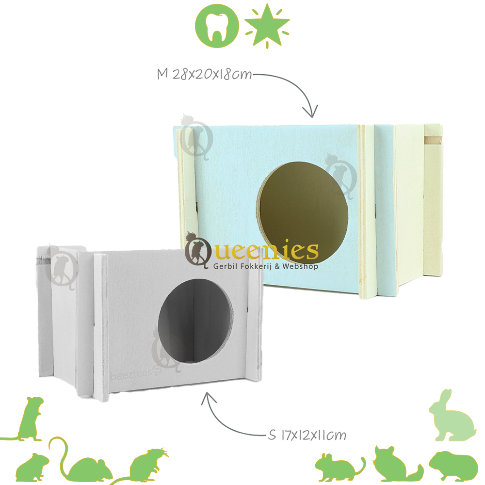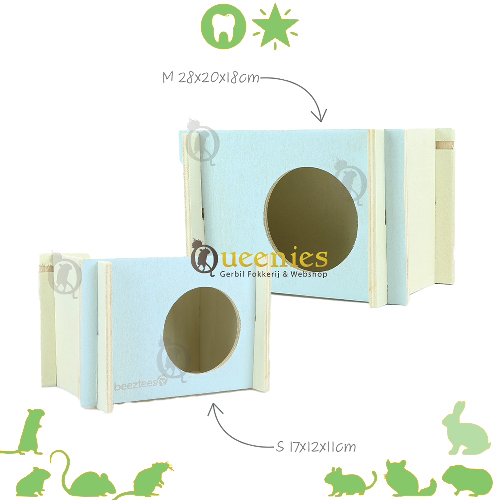 Afmetingen: S 17x 12 x 11 cm│M 28 x 20 x 18 cm Materiaal: Hout Geschikt voor: Knaagdieren zoals Gerbils, Dwerghamsters en Muizen, Ratten, Degoes, Chinchilla's en Cavia's