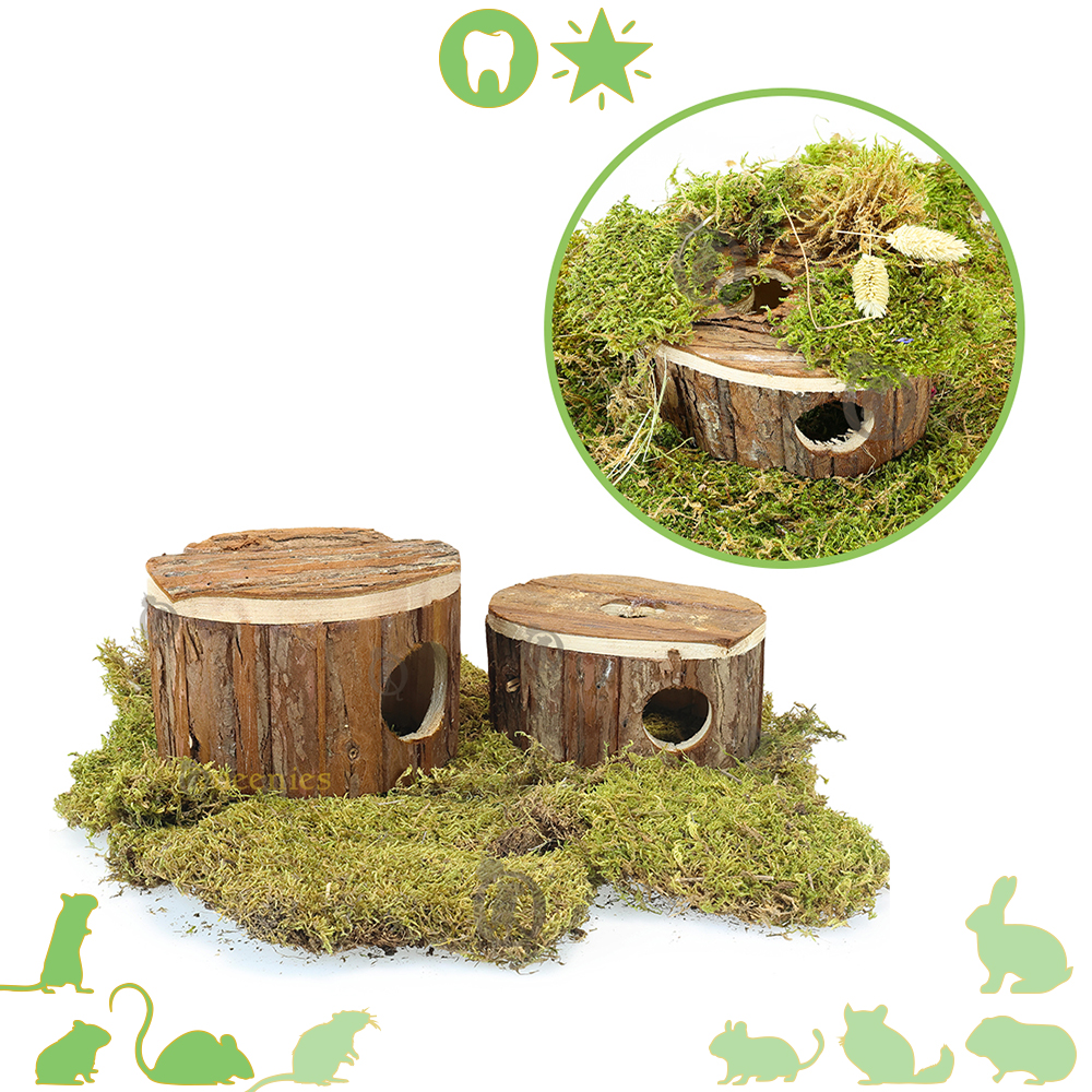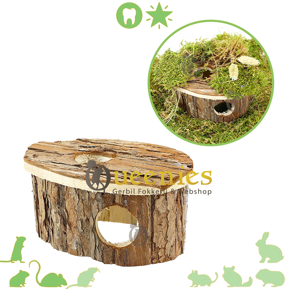 Zoals u aan de foto's kunt zien is dit huisje bij uitstek geschikt voor hamsterscaping. Voeg wat gedroogd Terrarium mos aan het huisje toe, wat Goudsbloem balderen of andere artikelen uit de categorie voeding supplementen, enkele mooie Dennenappels en voila, de eerste stappen in uw hamsterscaping zijn gezet!