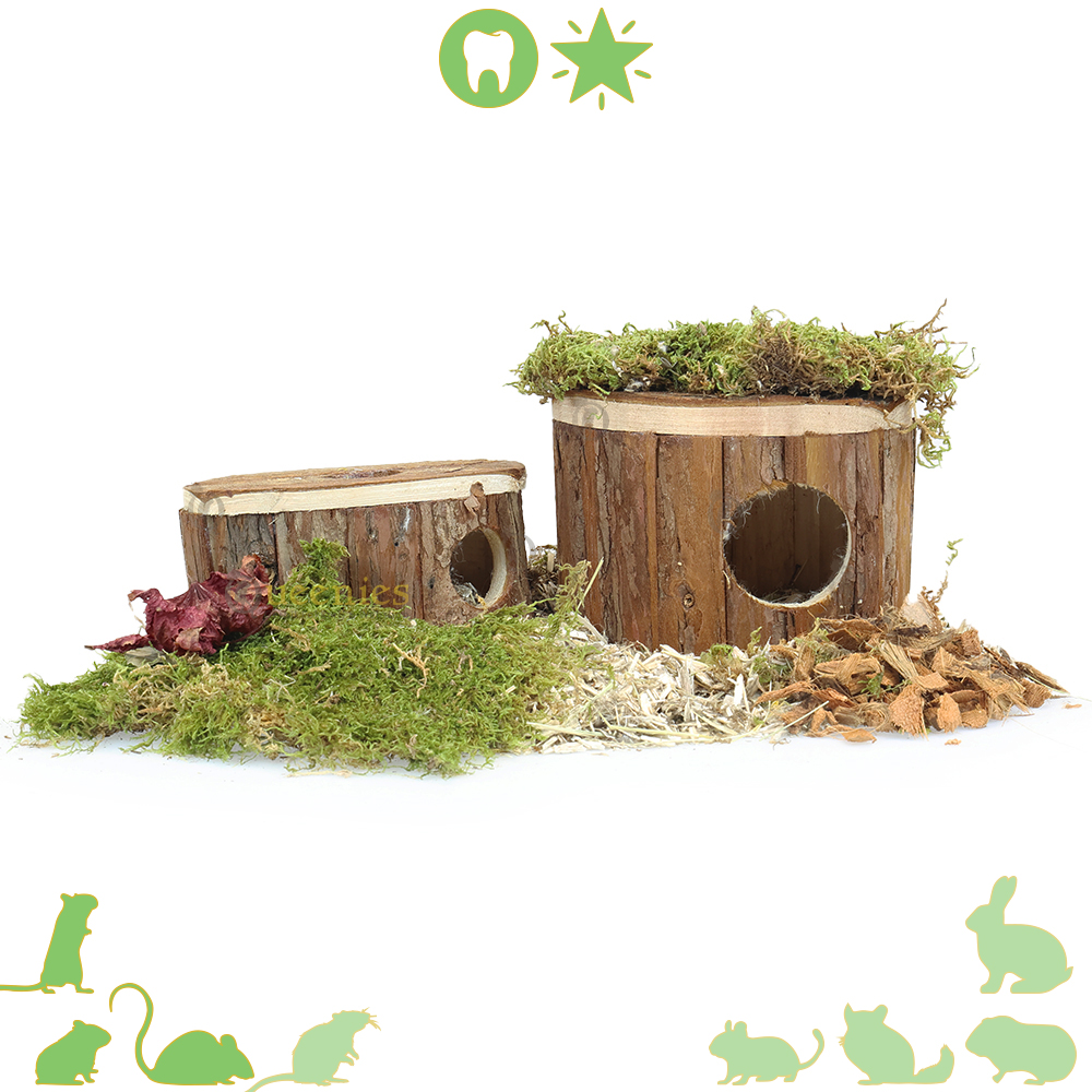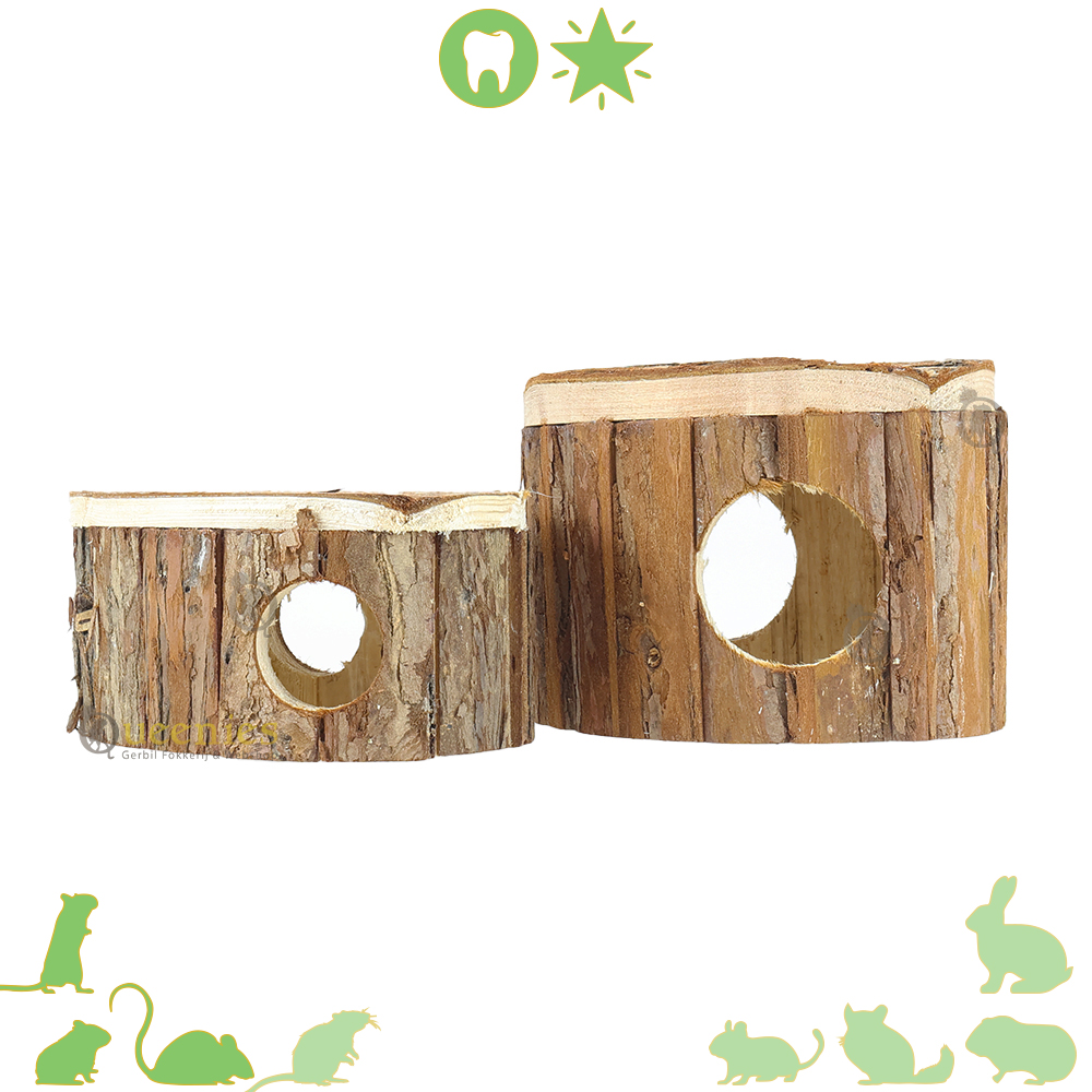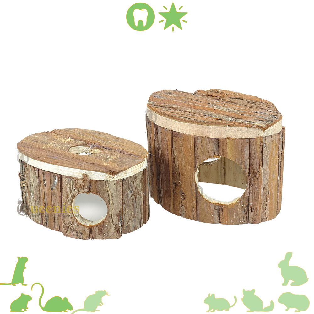 Afmetingen: 18 x 12 x 12│ 17,5 x 11,5 x 8 cm ( L x B x H ) Openingen: Ø 4 cm Geschikt voor: Kleine knaagdieren zoals, Gerbils, Dwerghamsters en Muisjes│18 cm huisje ook geschikt voor Goudhamsters