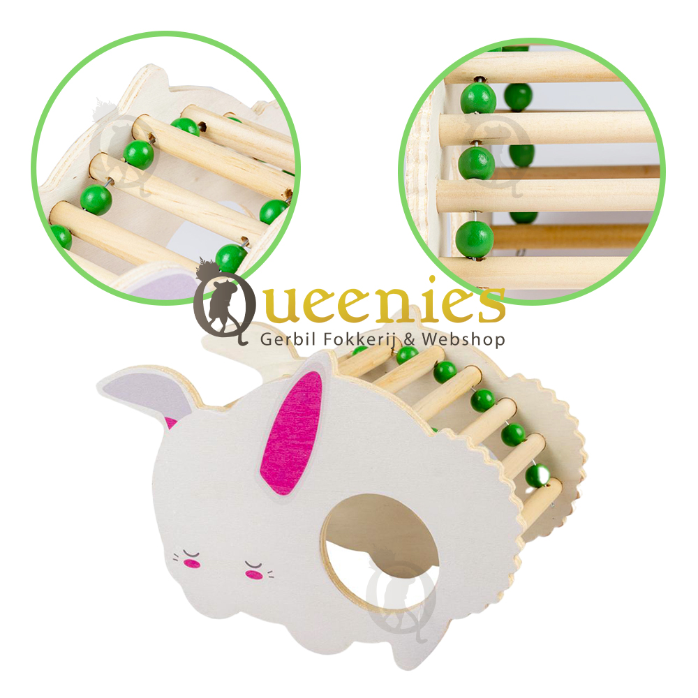 Het Speelhuis Konijn is niet alleen leuk vormgegeven, Knaagdieren kunnen het ook als speelgoed gebruiken. Gerbils of andere Knaagdieren kunnen binnen is het huisje gaat zitten, er boven op klimmen of een lekkere slaapplek ervan maken. Omdat het Speelhuis Konijn van hout gemaakt is, kunnen gerbils zonder problemen hieraan knagen. Tanden van Knaagdieren groeien erg snel. Het is belangrijk om dit goed te onderhouden. Door aan houten speelgoed te knagen worden de tanden op een natuurlijke manier gesleten.