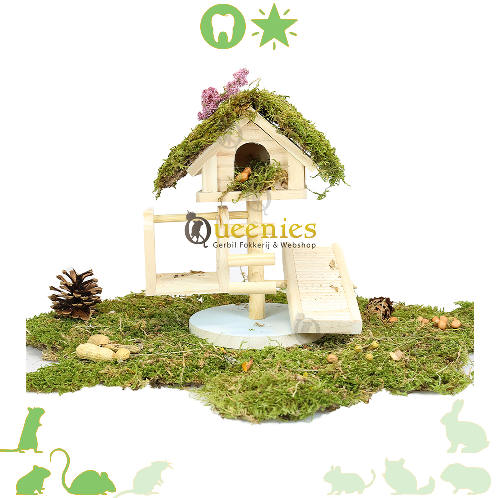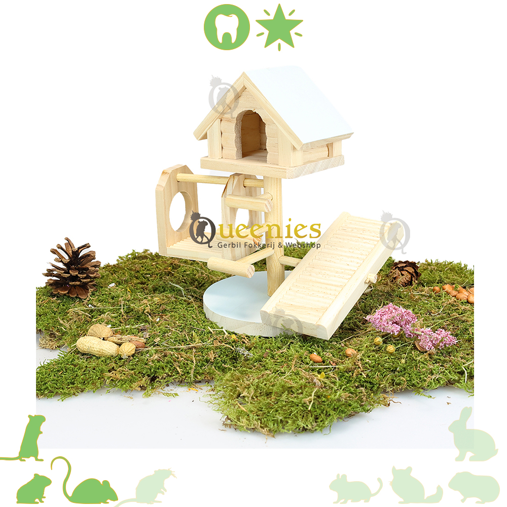 Dit Speelhuis Lovy heeft veel positieve eigenschappen. Uw kleine knaagdier is altijd op zoek naar avontuur, zeker onze gerbils. Die houden niet van stil zitten en zijn altijd opzoek naar avontuur. Een dag zonder avontuur is een dag niet geleefd zal een Gerbil moeten denkene. Zij willen alleen maar avontuur beleven, klimmen en klauteren, graven en knagen. Met het Beeztees speelhuis creeer je in het Terrarium / Gerbilarium een groot avonturen speelparadijs. Het knaagdierhuisje heeft vier verschillende elementen: een schommel, een trap, een knaagdierladder en bovenop een knaagdierhuisje, waarin uw knaagdier na al het spelen zich lekker in terug kan trekken. Door de stevige bodemplaat staat het huisje zeer stabiel in de het knaagdierenverblijf