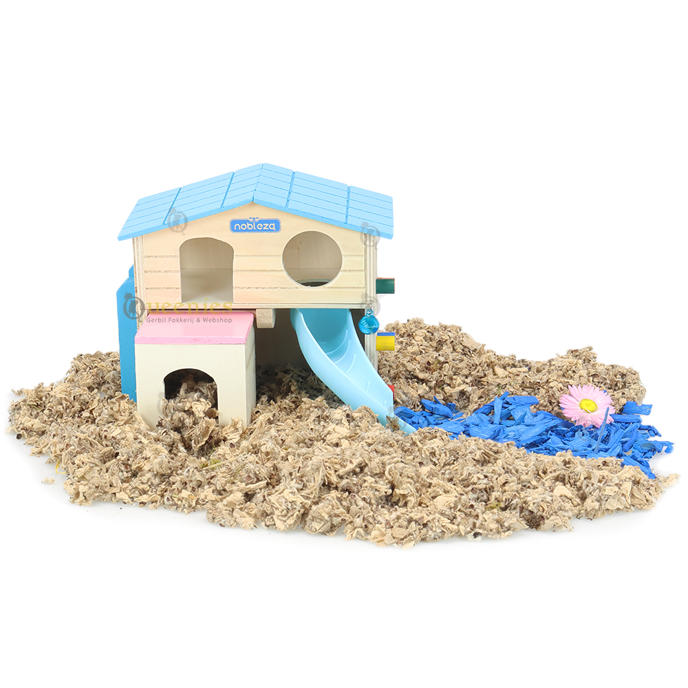 Naast speelplezier biedt het Speelhuis met Glijbaan ook een knus schuilplekje. De openingen en het bovenste platform bieden beschutting en een veilige plek om te rusten. Na een actief speelmoment kunnen je Hamster, Gerbil of Muis zich terugtrekken in het huis om te ontspannen. Het huis is zo ontworpen dat het gemakkelijk bereikbaar is voor kleine dieren, maar ook knus genoeg om zich veilig te voelen. Maak ook gebruikt van nestmateriaal om een lekker plekje te maken voor de Knaagdieren.