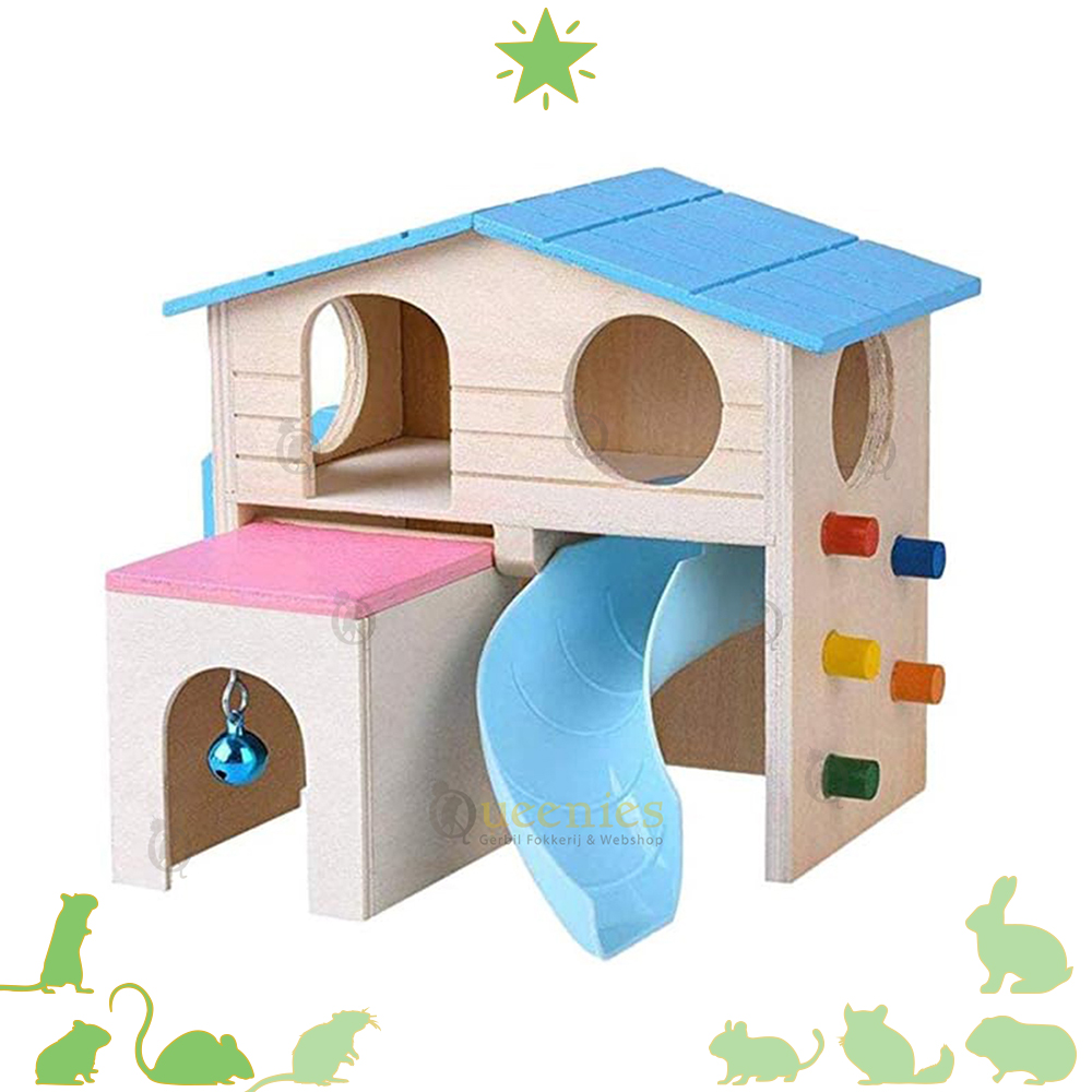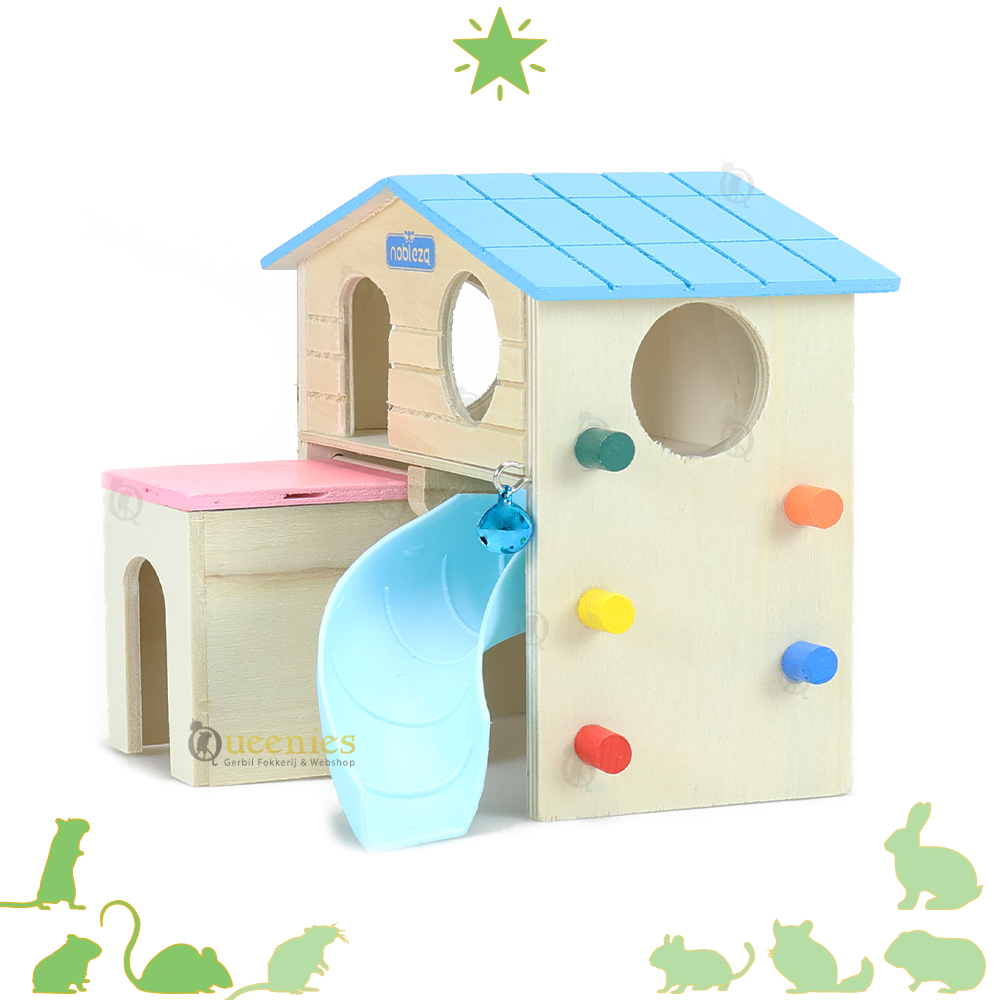 Kleine knaagdieren hebben een natuurlijke drang om te klimmen, knagen, graven en verkennen. Dit Speelhuis met Glijbaan voorziet in al deze behoeften door diverse activiteiten op één plek aan te bieden. Ze kunnen de glijbaan gebruiken voor speelse avonturen, de stangen beklimmen om hun motoriek te verbeteren en door de verschillende doorgangen kruipen voor een gevoel van avontuur. Het Speelhuis is ook goed te combineren met ander speelgoed.