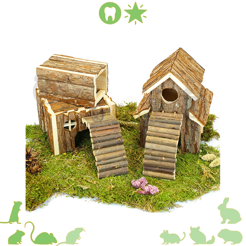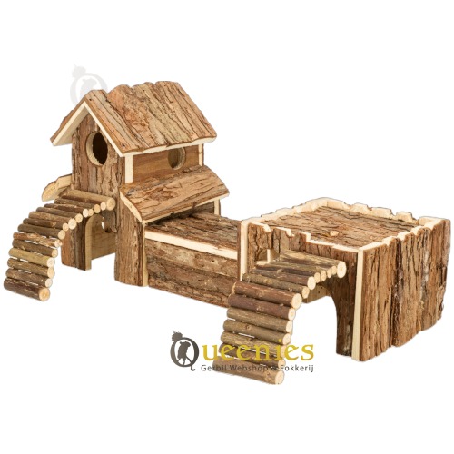 Doordat dit Frida huisje van Trixie deze elementen herbergt is Speeltuin Frida bij uitstek ook geschikt voor Hamsterscaping. Wanneer u wilt scapen draai alles om de natuurlijke behoefte en uitstraling van uw knaagdier. Met dit mooie en veelzijdige huisje Frida kunt u veel kanten op en bent u ook in staat om af te wisselen. Het huisje leent zich er ook uitstekend voor om wat Gedroogd Terrarium Mos op te leggen en mee aan te kleden. Dit geeft direct een erg mooi natuurlijk effect aan deze speeltuin voor knaagdieren.