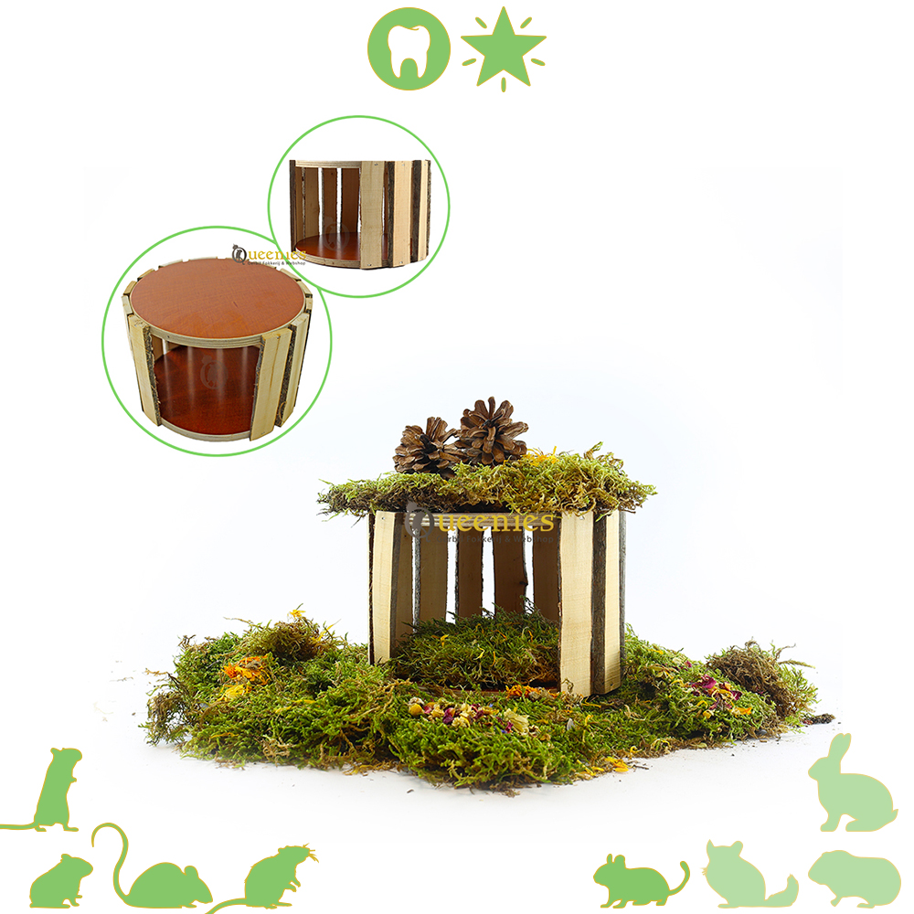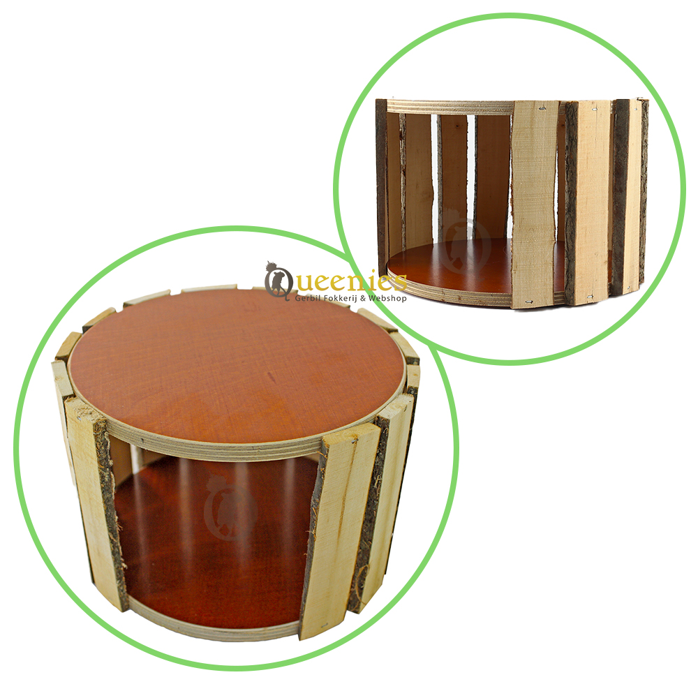 Rond knaagdier huisje van 20x14cm, wasbaar, gemaakt van multiplex bord.Ideaal voor niet zindelijke hamsters, muizen en ratten.Gerbils zijn zindelijke dieren. Het wasbare gedeelte is daardoor minder relevant, alsnog blijft het een erg leuk huisje die niet zal misstaan in uw gerbilarium Afmetingen 20x14 cm