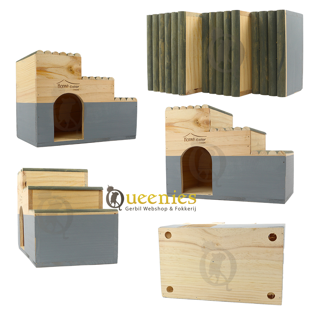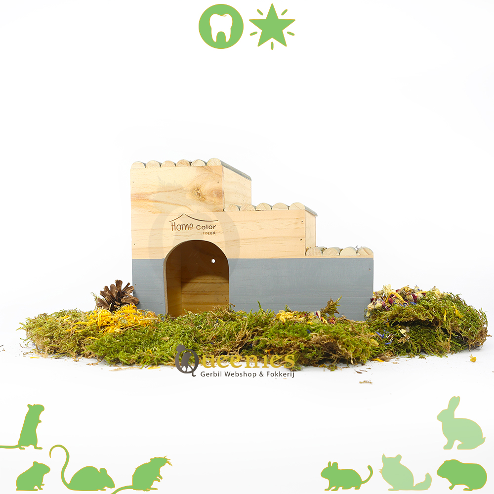 Het Zolux Knaagdierhuis Home Color Trap Grijs van 30 x 18 x 23,5 cm is een houten knaagdierhuis voor (kleine) cavia's, gerbils, hamsters, muizen en andere kleine knaagdieren. Het huis is gemaakt van hout en heeft een dak bestaande uit ronde latjes, waardoor jouw dier ook lekker op het huis kan klimmen en klauteren zonder zijn grip te verliezen. Voor wat meer kleur is de helft van het huis grijs geverfd. Het huis heeft één ingang aan de voorzijde en is helemaal veilig voor knaagdieren en mag dus aan geknaagd worden! - Houten knaagdierhuis van Zolux - Met dak van latjes, leuk om op te klimmen en te klauteren - Met leuk grijs detail - Voorzien van een afgeronde ingang - Voor kleine huisdieren als (kleine) cavia's, hamsters en muizen Afmetingen: 30 x 18 x 23,5 cm