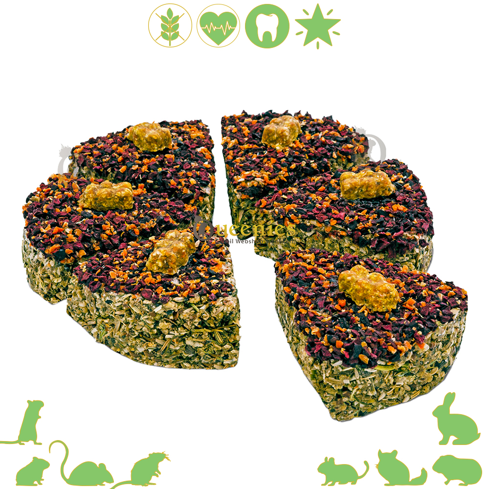 Een Feest taart die gezond is? Ja het kan, althans, bij Knaagdieren dan😉! In de Grainless Feest taart zitten veel goede voedingstoffen en Gedroogde Groenten. Onderin bij specificaties staat omschreven wat er precies in de Grainless Feest Taart zit. Maar toch willen wij er hier alvast een paar benoemen. De Feest taart is gemaakt op basis van hoogwaardige ingrediënten, waaronder voedzame graszaden en heerlijke erwtenvlokken. Deze combinatie vormt niet alleen een smaakvolle ervaring voor huisdieren, maar zorgt ook voor een uitgebalanceerde voedingsbron die bijdraagt aan hun gezondheid.