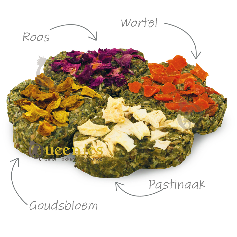 Een gezonde snack voor Gerbils of andere knaagdieren, wederom met peterselie (natuurlijke vitamine C), wortel (natuurlijke vitamine A) en een knapperige volkoren mengsel.