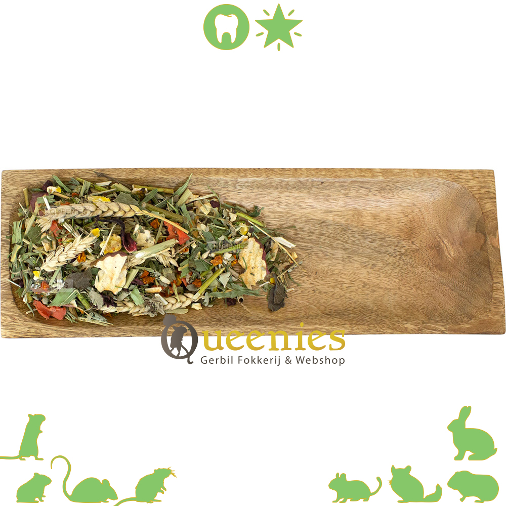 Gemengd met hooi of andere kruiden, of als aanvulling op de dagelijkse heuration