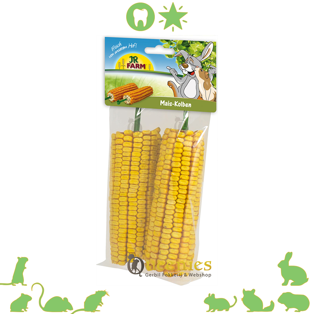 JR Farm maïskolven zijn een gezonde en natuurlijke snack voor Gerbils en andere Knaagdieren plus Konijnen. Mais is een allesomvattende aanvullende voeding voor dieren zoals een Hamster, Muis en Rat. Mails wordt vrijwel in alle soorten dierenvoeding gebruikt, van groot vee tot onze kleine Knagertjes. De belangrijkste eigenschap van Mais is dat het veel energie geeft. Dit is onmisbaar voor jonge dieren die in de groei zitten zodat hun lichaamsbouw gestimuleerd wordt. Of zwakke dieren zodat hun verzwakte lichaam weer kan aansterken. Maar ook gezonde dieren zijn altijd erg gebaat bij een voeding met voldoende energiewaardes. Daarom kunt u een maiskolf altijd met een gerust hart in uw Knaagdieren Terrarium / Gerbilarium ophangen.