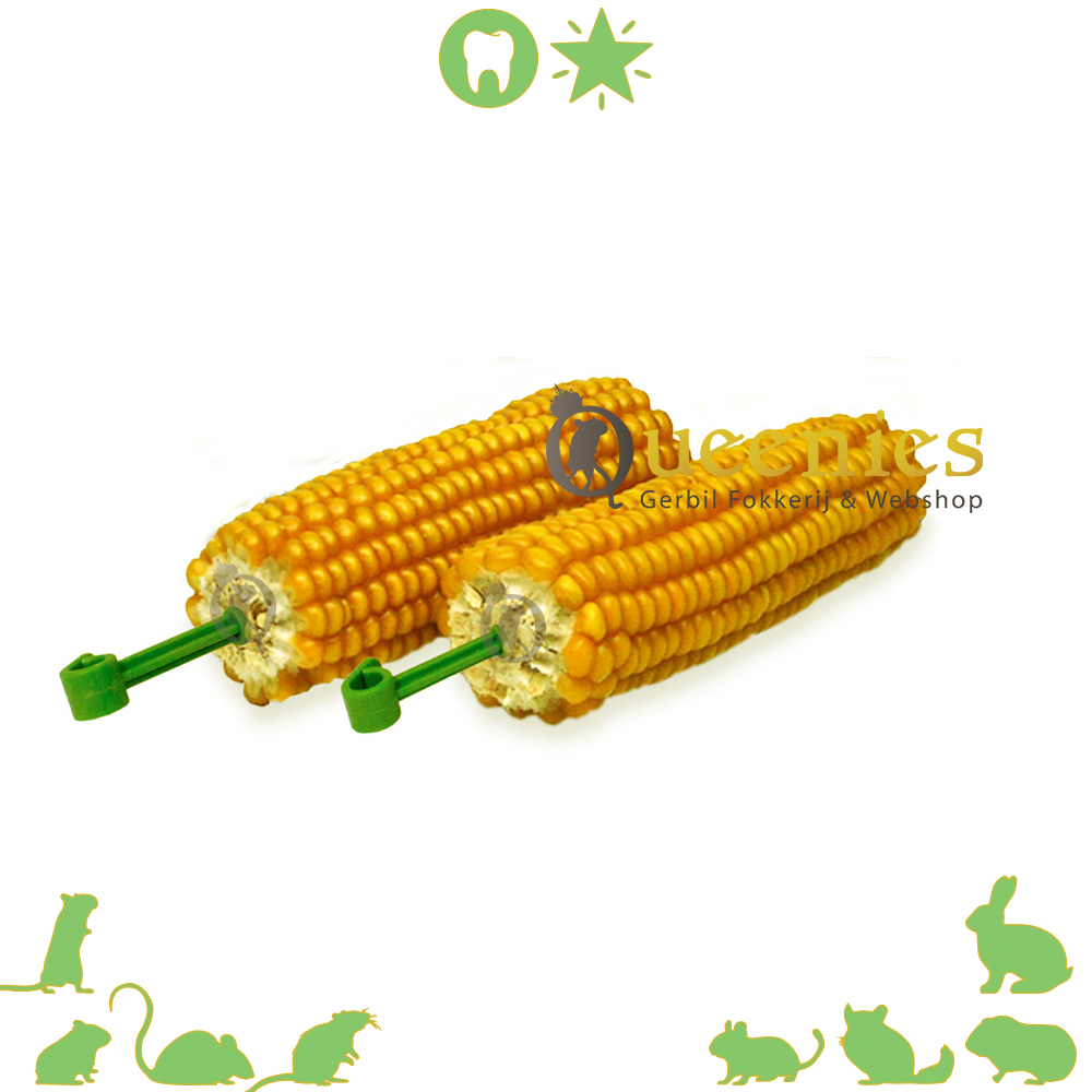 De harde maïskolven helpen tevens bij het slijten van de tanden!