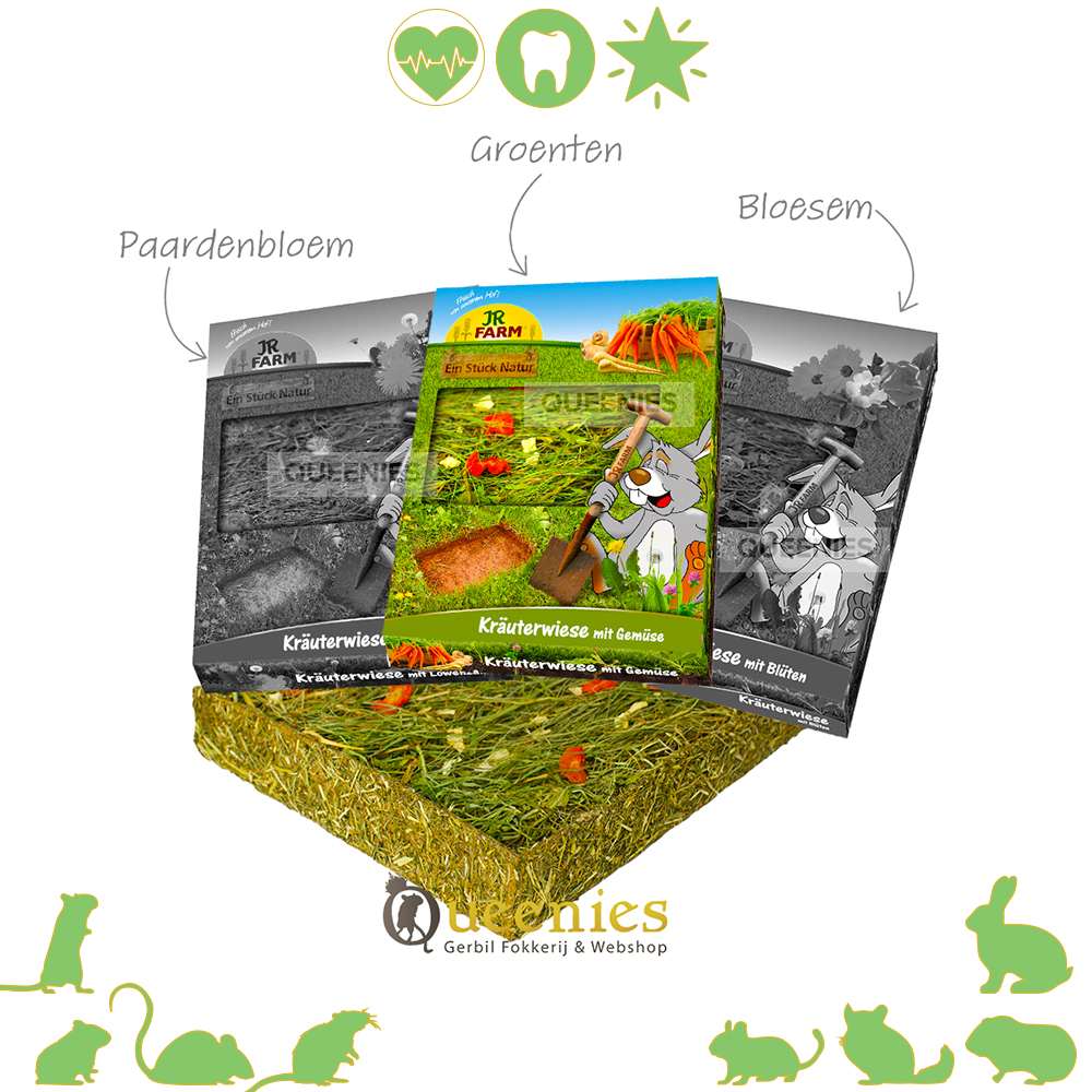 JR Farm Weiland Kruidenweide met Groente voor Knaagdieren & Konijnen: De Ultieme Natuurlijke Foerageer mat!