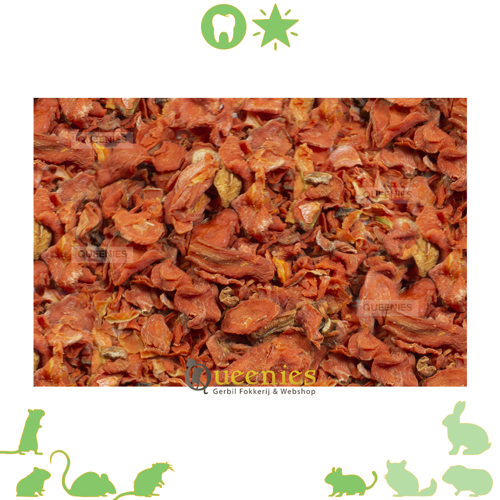 Deze Wortel Chips zijn gemaakt van natuurlijke ingrediënten. Zoals eerder gezegd is dit een hele goede/gezonde snack. De meeste Knaagdieren maar vooral Gerbils hebben snack groeiende knaagtanden. Dit moet goed onderhouden worden. Sommige snacks zoals deze Wortel chips kunnen hier goed mee helpen. Dit is een natuurlijke manier van het slijten van de tanden. Ook is het belangrijk voor Gerbils om variatie in hun dieet te hebben. Daarom kunnen snack heel belangrijk zijn. Dit is een aanvulling op het dagelijks dieet van Gerbils en niet een vervaging. Ook worden traktaties vaak gebruikt als beloning. Dat kan ook perfect met deze Wortel Chips.