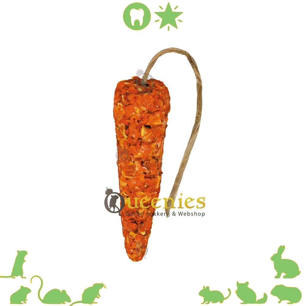 Deze snack sloeg niet aan bij het publiek. Daarom is dit product uit het assortiment gehaald. Gelukkig zijn er genoeg alternatieve als u een wortel snack zoekt. Wat te denken van de wortel maantjes bijvoorbeeld? Het is ook echt maar een voorbeeld, de webwinkel staat vol met wortel snacks voor knaagdieren. Zoek simpel op ‘wortel’ en zie alle wortel snacks voor Gerbils, hamsters en of konijnen.