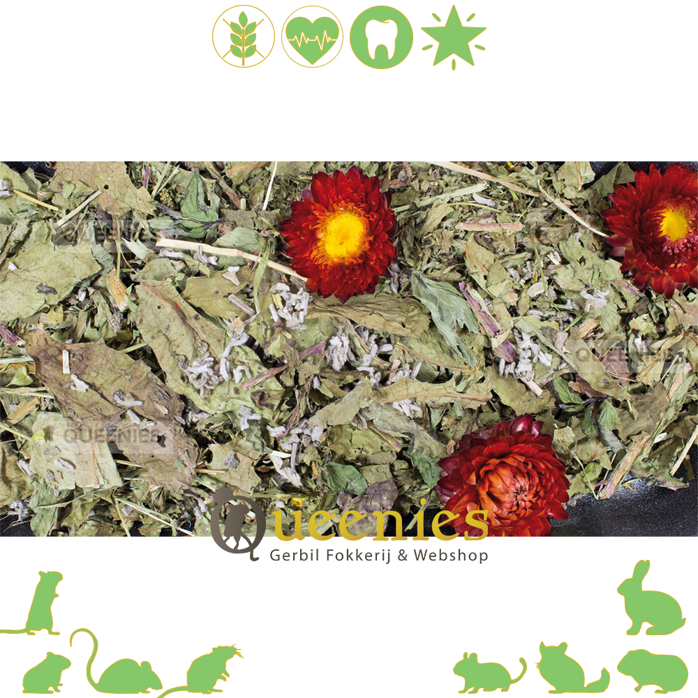 De JR Farm Grainless Plus Salie & Paardenbloem is een mix an zachtjes gedroogde en smakelijke paardenbloem in combinatie met geurige salie - dat is pure ontspanning voor elk knaagdier. De speciale ingrediënten die salie bevat, kunnen een positieve invloed hebben op de luchtwegen van uw knaagdier, terwijl de aromatische strobloemen een echt speciale en smakelijke snack zijn. Het is de perfecte aanvulling op een graanvrij dieet.