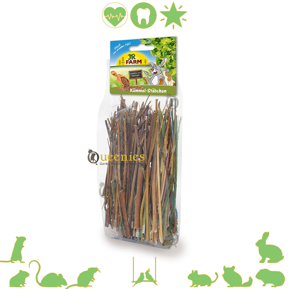 JR Farm Karwij Stokjes zijn een aromatische gezonde snack in de meest originele vorm. Komijn helpt de spijsvertering en stimuleert de darmwerking. Ook geschikt voor alle huisdierenvogels.