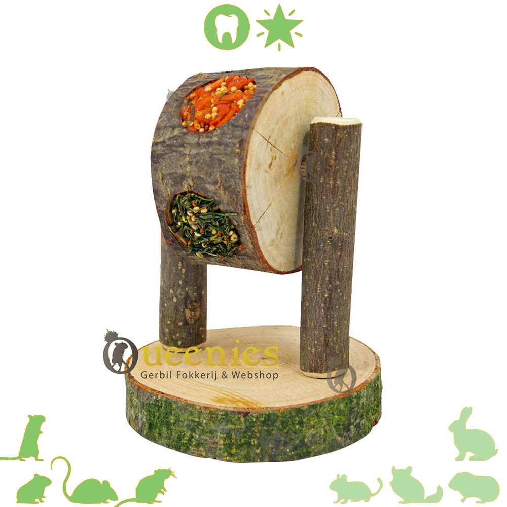 Mr. Woodfield Hometrainer voor Gerbils is een snack die lekker draait als de Gerbils of andere knaagdieren eraan willen knagen. Dit biedt een enorme uitdaging voor Knaagdieren om het heerlijke snoep eruit te kunnen knagen.