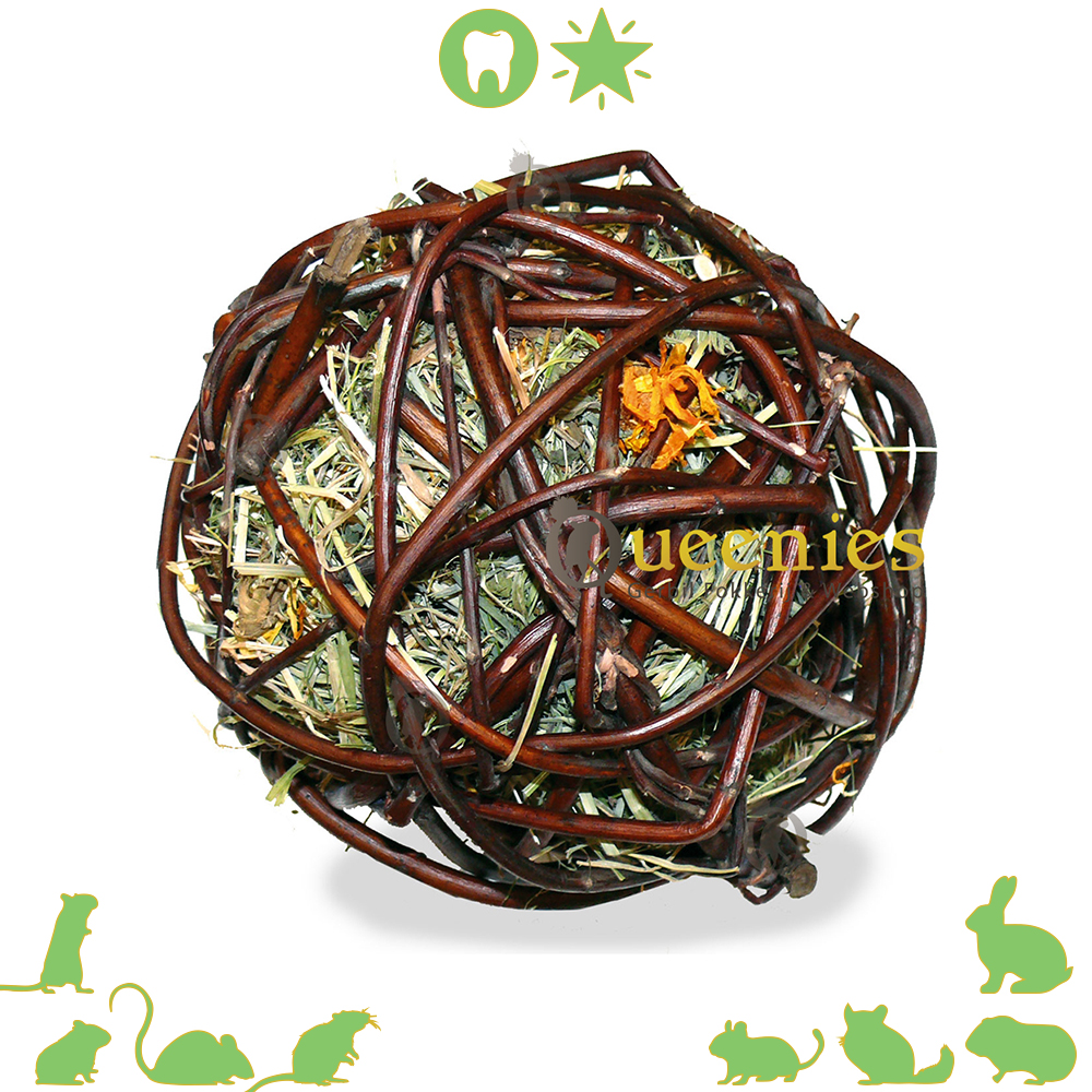 Deze Willow Heuball is gevuld met de beste kwaliteit Bergweide hooi gevuld met overheerlijke goudsbloemen. Goudsbloem heeft de positieve eigenschap dat het ontstekingsremmend werkt. Bergweide hooi heeft een zeer hoog vezel gehalte.