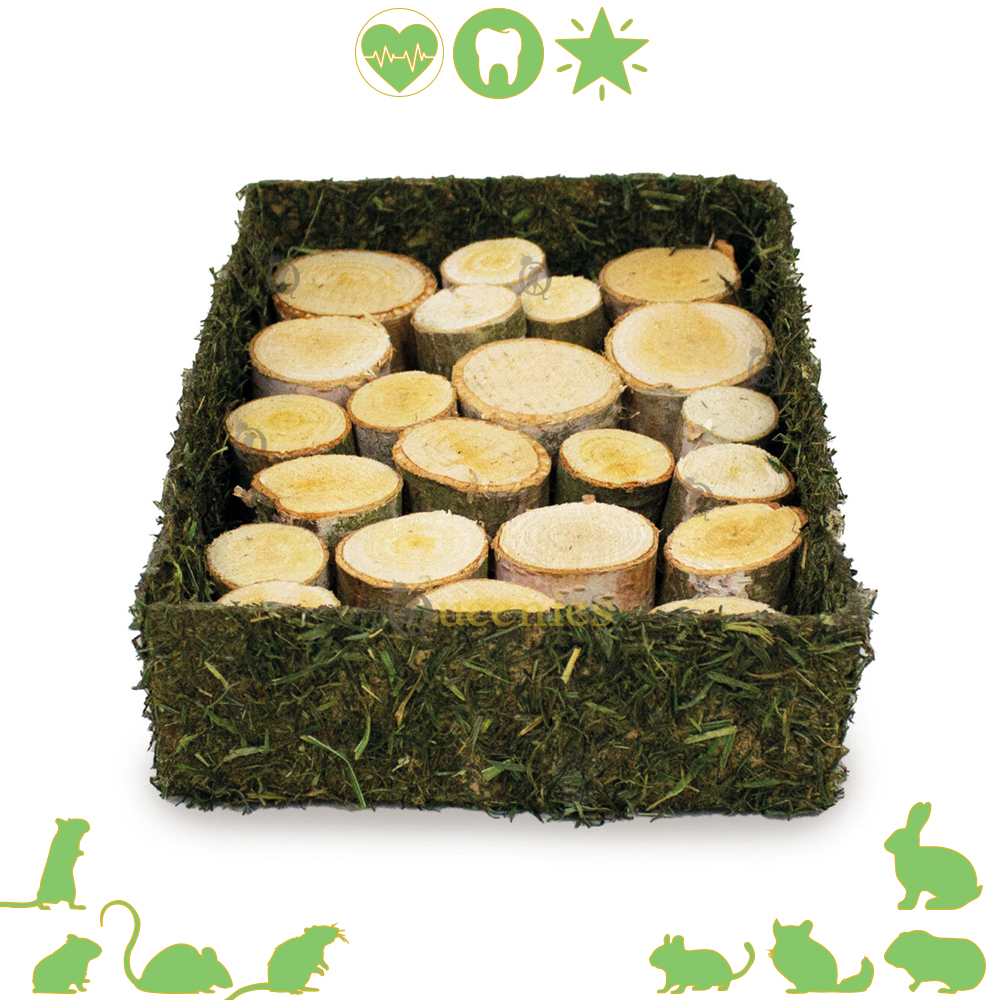 Het Snuffel bos is ideaal om het instinctieve snuffel- en zoekgedrag van de Knaagdieren en Konijnen te bevorderen. Dit foerageergedrag is essentieel voor hun welzijn, omdat het hen stimuleert om actief te blijven. Daarnaast helpt het knagen aan de houten schijven bij het slijten van hun tanden, wat belangrijk is om tandproblemen te voorkomen.