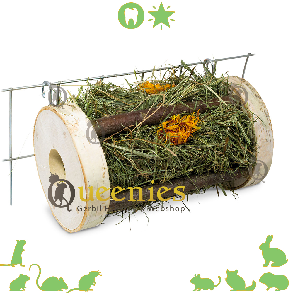 Een erg leuke toren gevuld met hooi en knaagstok. Weer een ware uitdaging voor gerbils om dit zosnel als mogelijk aan te vallen. Je kan het neerzetten als toren, of ophangen. De JR Farm Kruiden Ruif is een stevige houten ruif gevuld met gezonde kruiden en heerlijk geurende bergweidehooi. Als de ruif eenmaal opgepeuzeld is, kan deze eenvoudig aangevuld worden. Ideaal om op te hangen in het verblijf en het knabbelplezier kan beginnen voor de knaagdieren en Gerbils! De ruif is gemaakt van loofhout dus ook knabbelbaar!