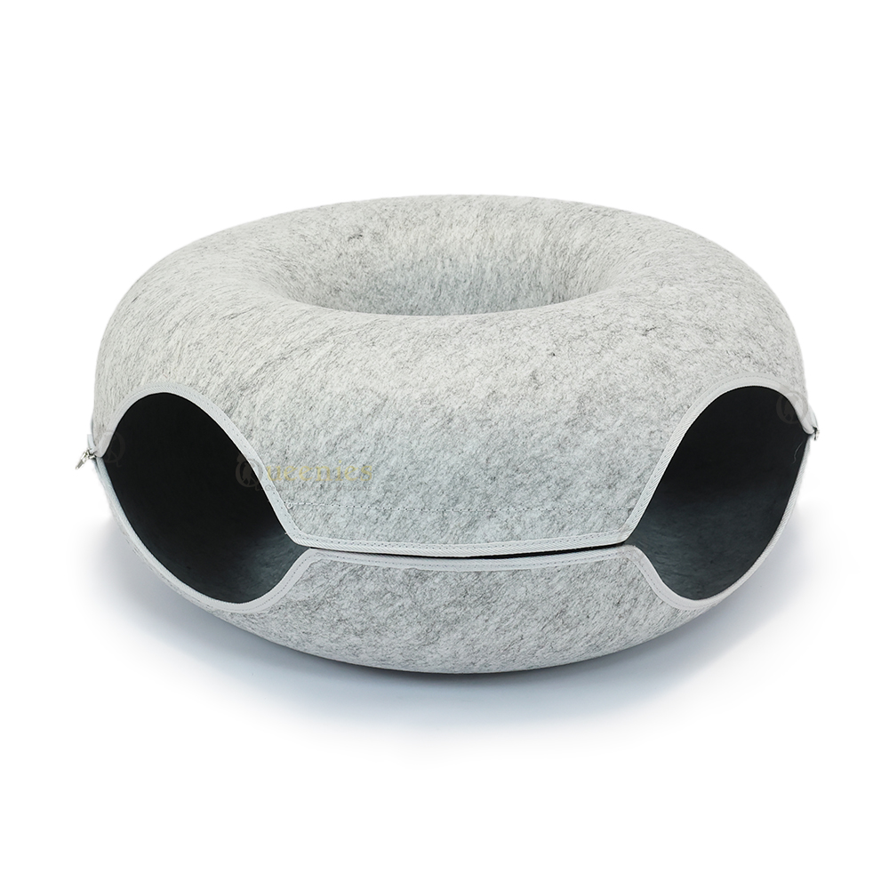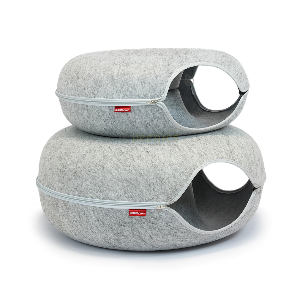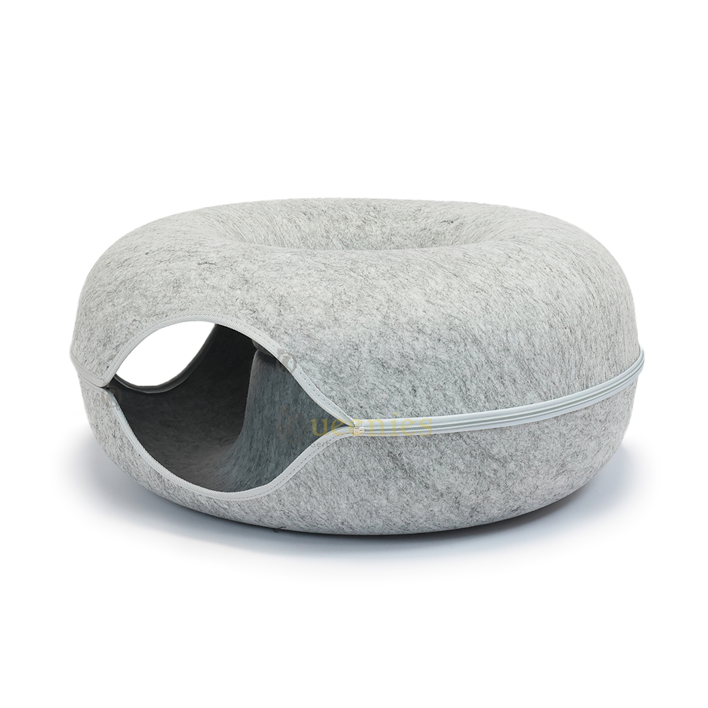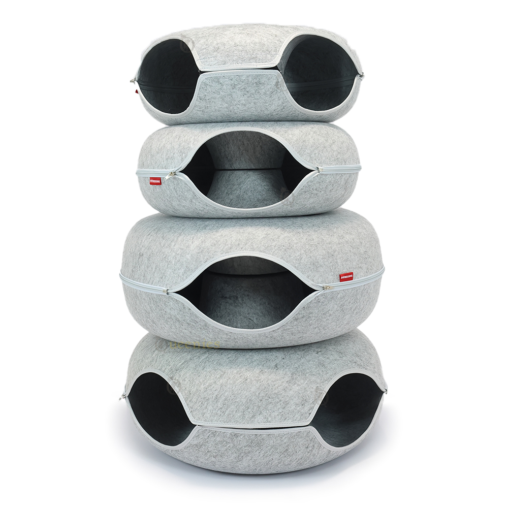 De stevige vilten wanden dempen geluiden en geven katten een gevoel van bescherming. Dankzij de dubbele ingangen hebben ze altijd een uitweg, wat stress vermindert en zelfvertrouwen geeft.