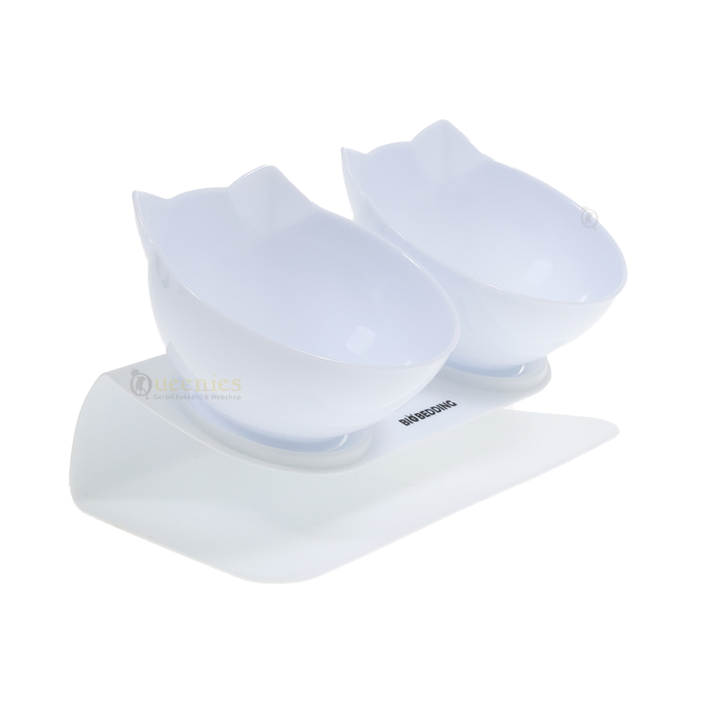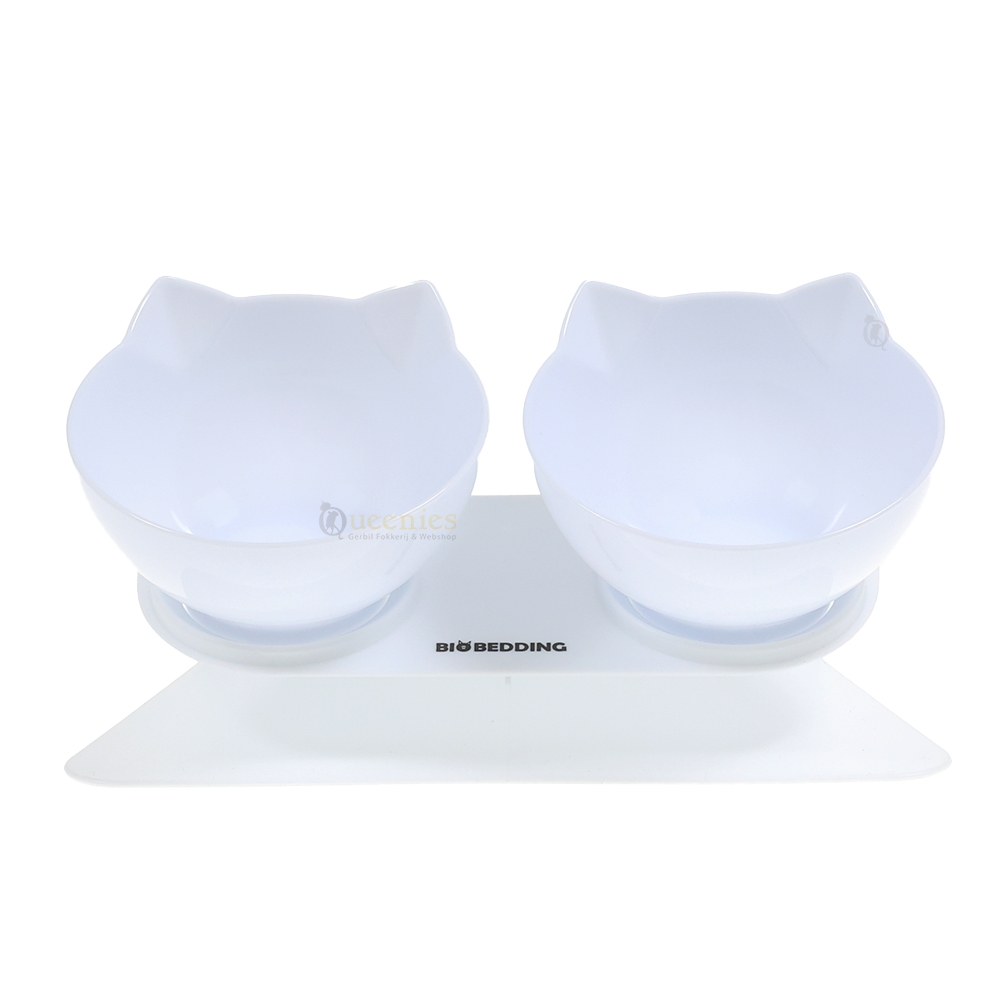 Dubbele Kattenvoerbak Wit van BioBedding – Gezond eten, elke dag opnieuw