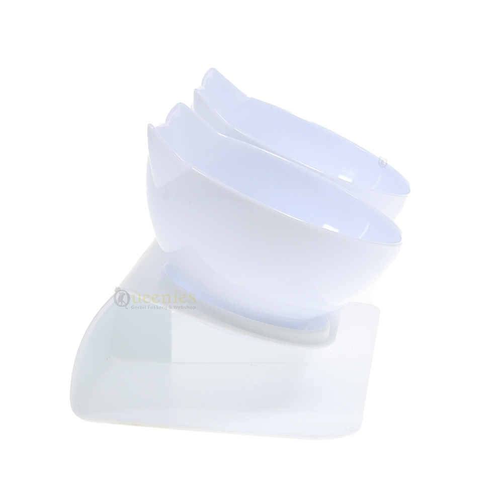 De dubbele kattenvoerbak wit is ontworpen om verschillende voersoorten overzichtelijk te scheiden. De twee afzonderlijke witte kommen zijn geschikt voor droogvoer, natvoer, snacks of water. Dankzij het gladde oppervlak blijft het voer niet plakken, wat vooral handig is bij vleesvoeding.