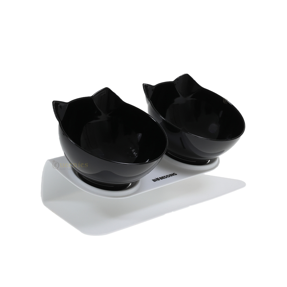 Dubbele Kattenvoerbak van BioBedding – Comfortabel eten in stijlvol zwart