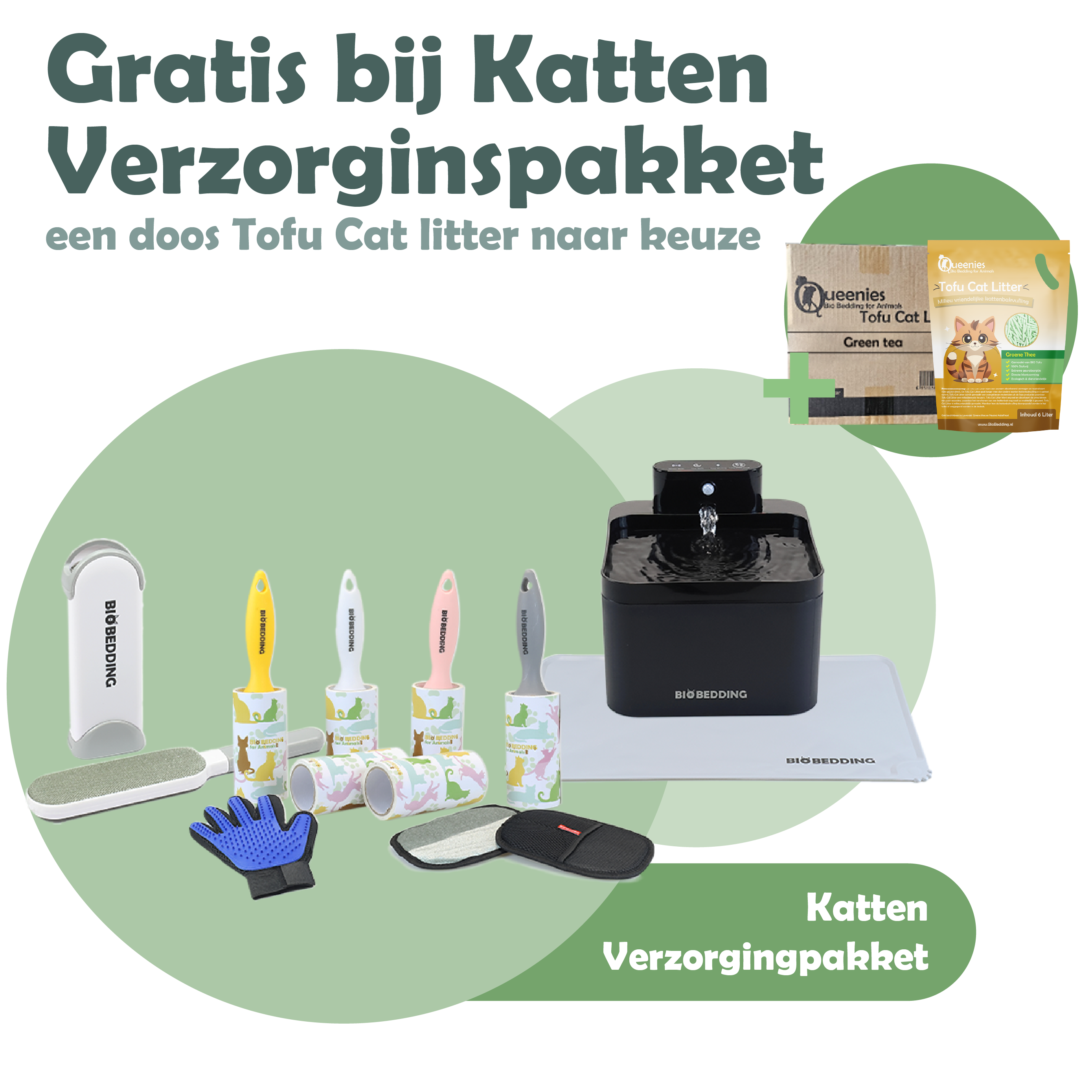 Katten Verzorgingspakket – inclusief gratis tofu kattenbakvulling Groene thee doos