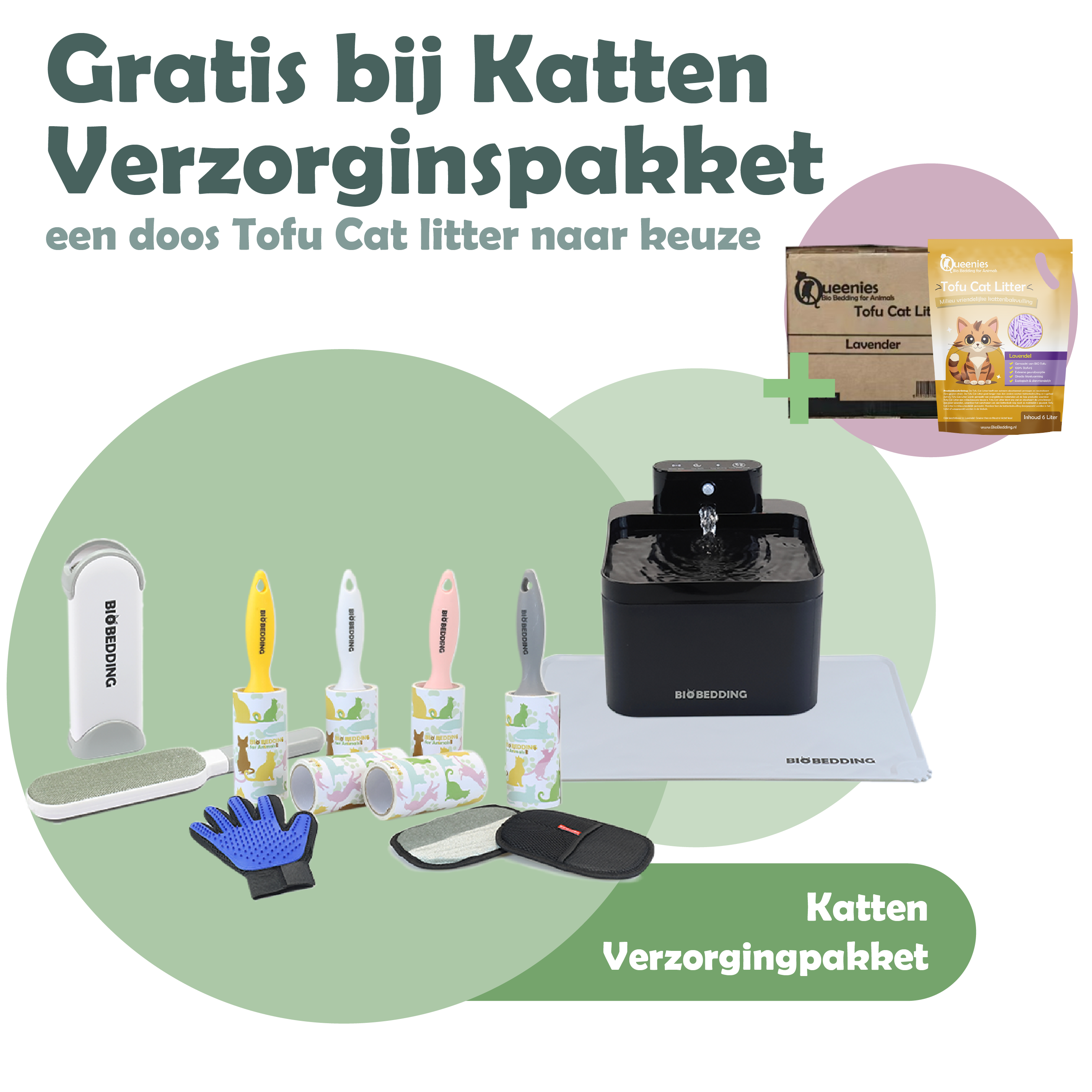 Katten Verzorgingspakket – inclusief gratis tofu kattenbakvulling Lavendel doos