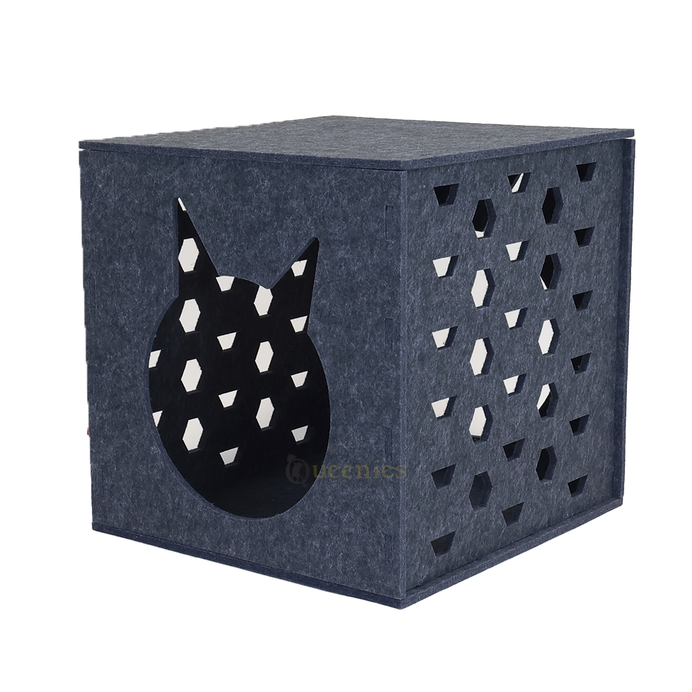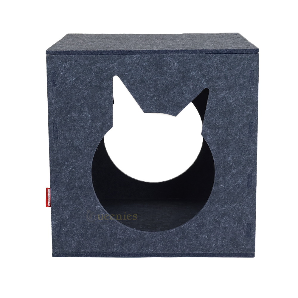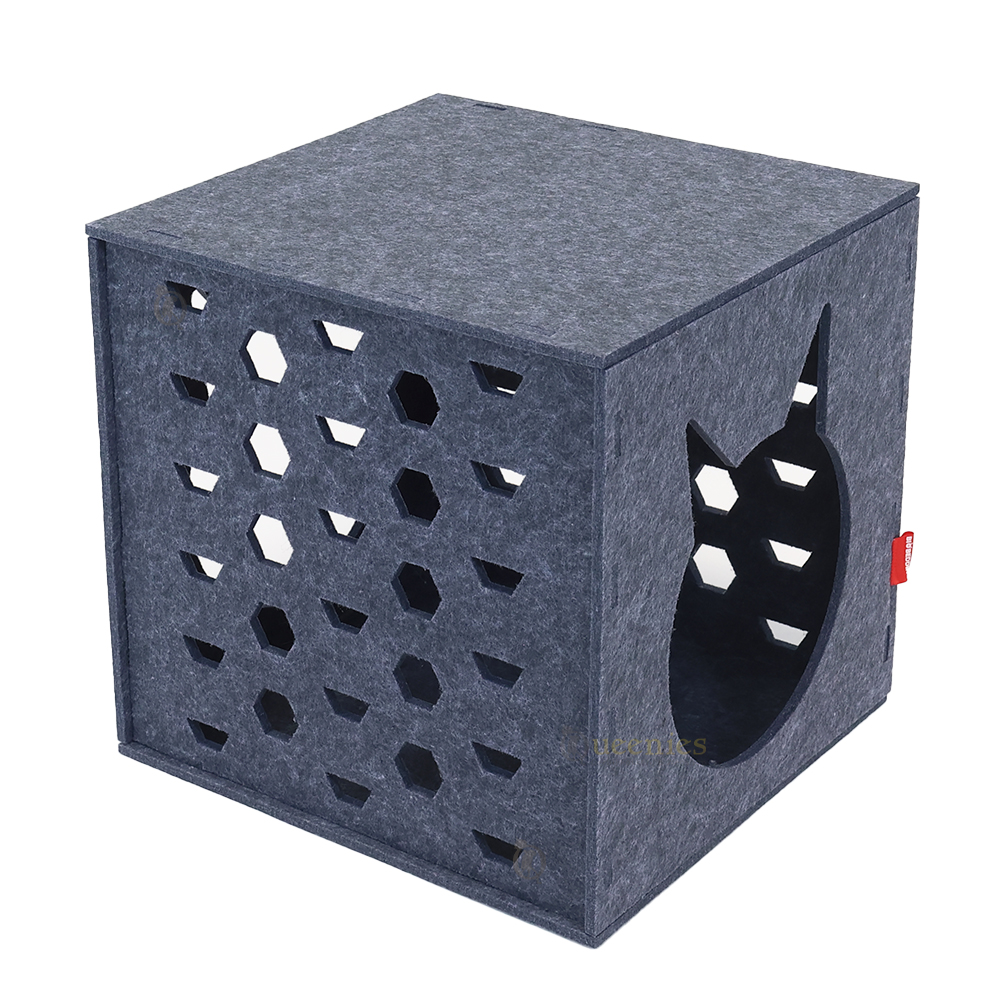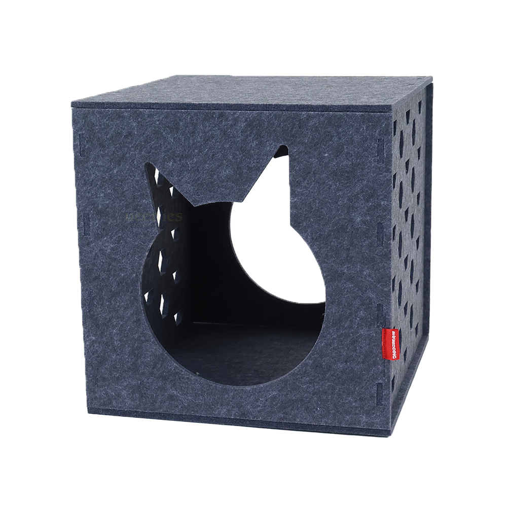 Kattenhuis Kubus Deluxe – modern vilten kattenhuis met uitgesneden katteningang