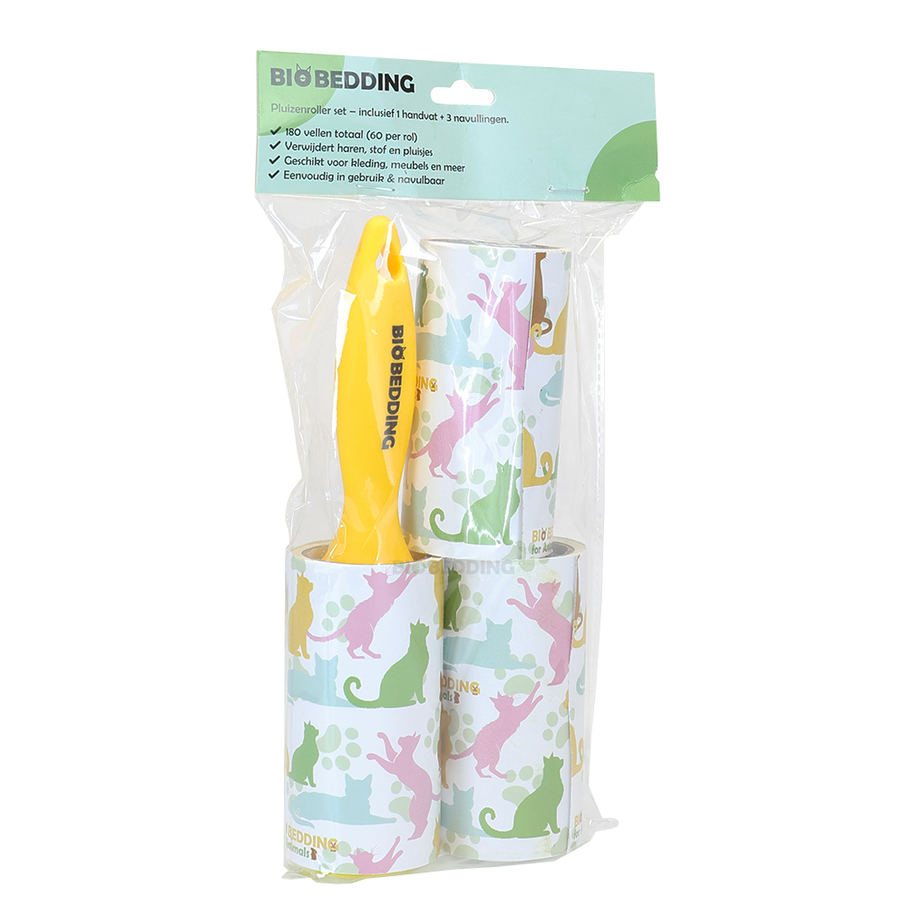Deze opvallend gele kleefroller is jouw ideale pluizenroller om snel en effectief haren, stof en pluisjes van kleding, meubels of bekleding te verwijderen. Zodra je hond of kat in huis hebt krijg je er gratis een verzameling haren bij, waar je maar kijken kunt. Een pluizen kleefroller is dan geen overbodige luxe, maar een echte must have voor thuis, in de auto of op kantoor. Dankzij de drie navullingen met ieder 60 vellen heb je direct 180 vellen gebruiksklare kleefkracht in handen. Perfect voor allerdaags gebruik! Één rol in gebruik, twee als reserve!