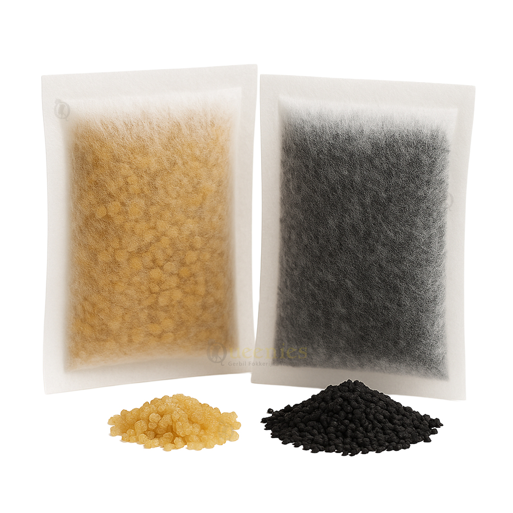 De actieve kool verwijdert geurtjes en bacteriën uit het water terwijl de harskorrels kalk en metalen binden. Zo blijft het water fris en gezond en blijft ook de fontein in topconditie.