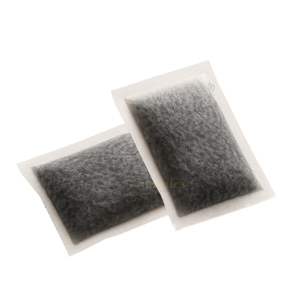 Materiaal: Theezakjes gevuld met actieve kool en harskorrels