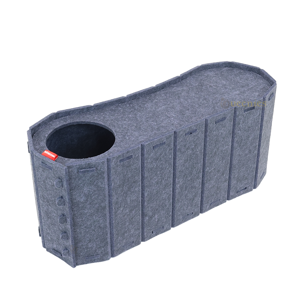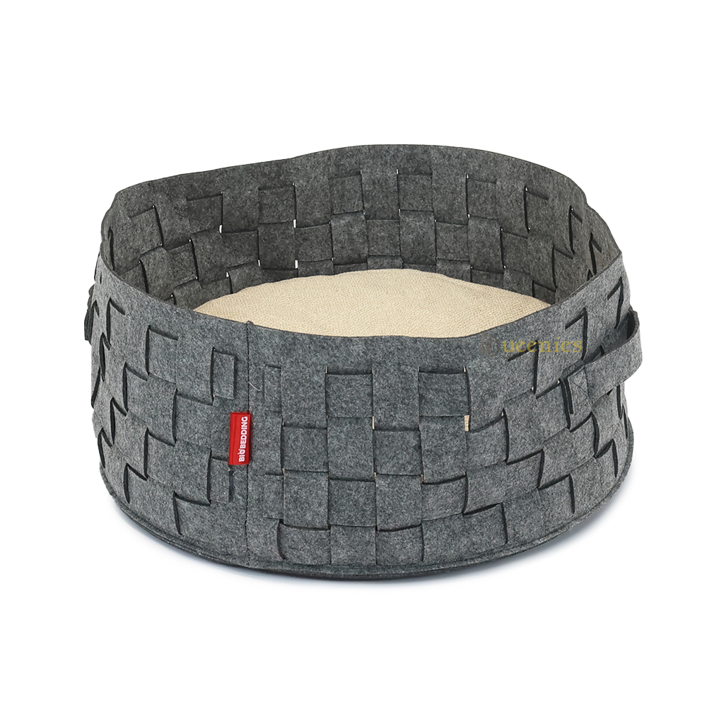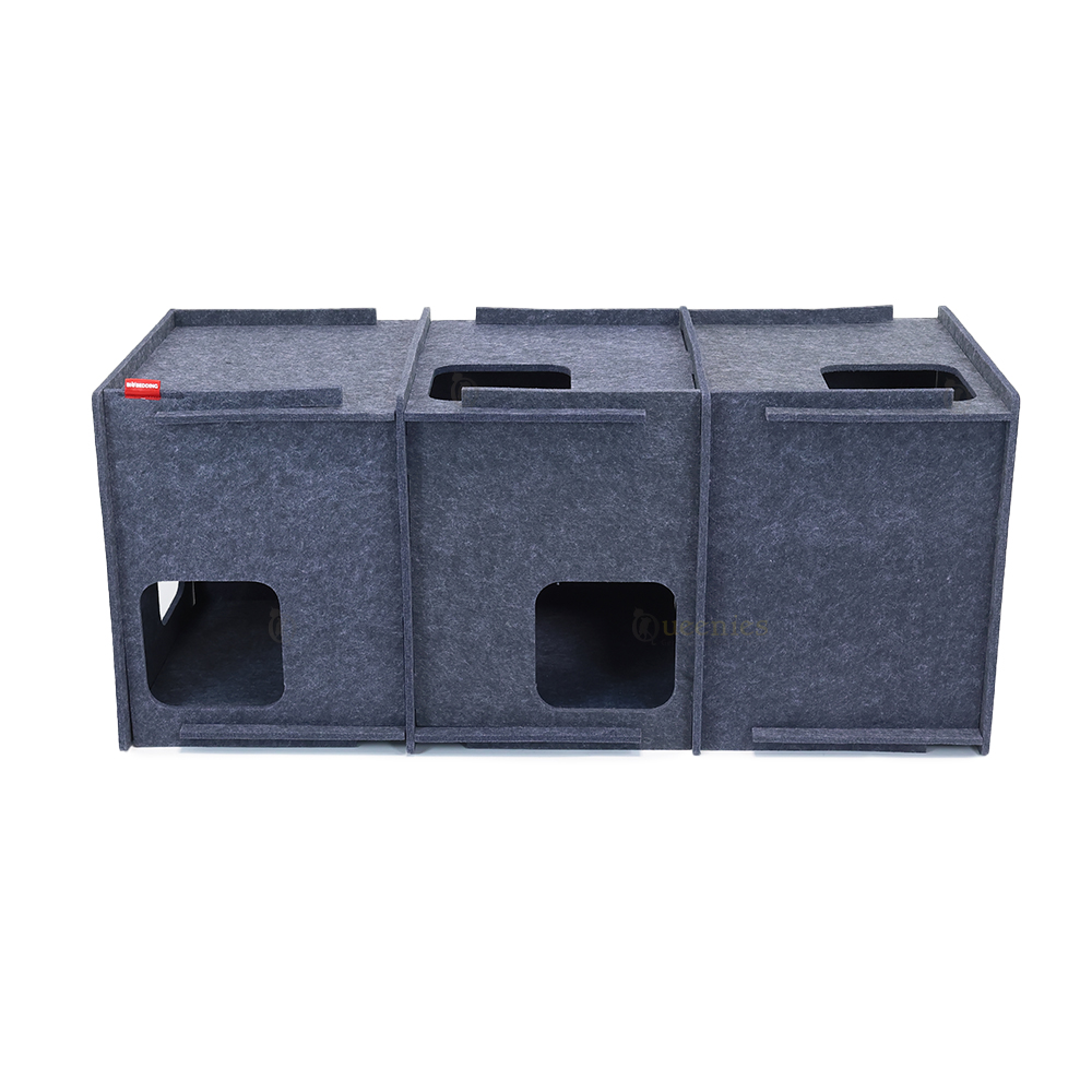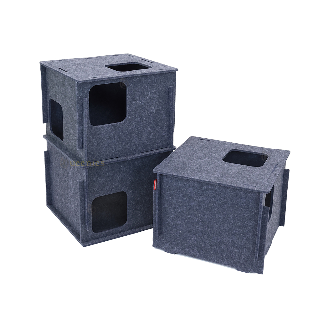 De buitenzijde is gemaakt van stevig vilt dat zijn vorm behoudt, zelfs bij dagelijks gebruik. Dankzij het compacte ontwerp past dit kattenhuis moeiteloos in elk interieur. Je kunt het op de grond plaatsen of hoger zetten, bijvoorbeeld op een kast of vensterbank.