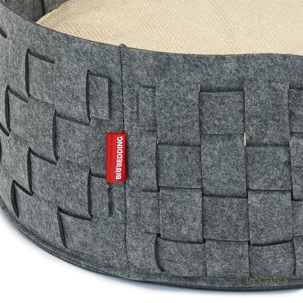 De buitenzijde is gemaakt van stevig textiel of vilt, afhankelijk van de uitvoering, zodat de mand zijn vorm behoudt. Kleine katten voelen zich beschermd in de ronde vorm, terwijl grotere rassen zoals Ragdolls of Noorse Boskatten genoeg ruimte hebben om uitgestrekt te liggen.
