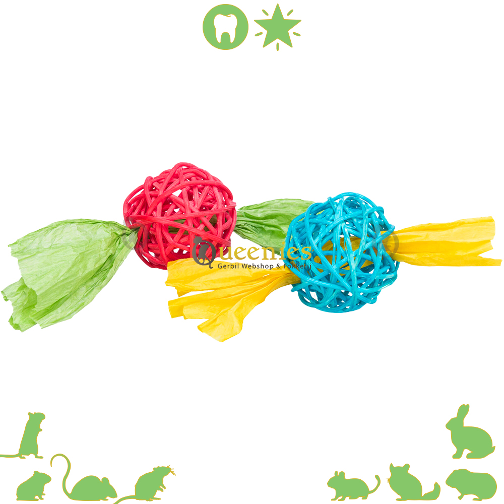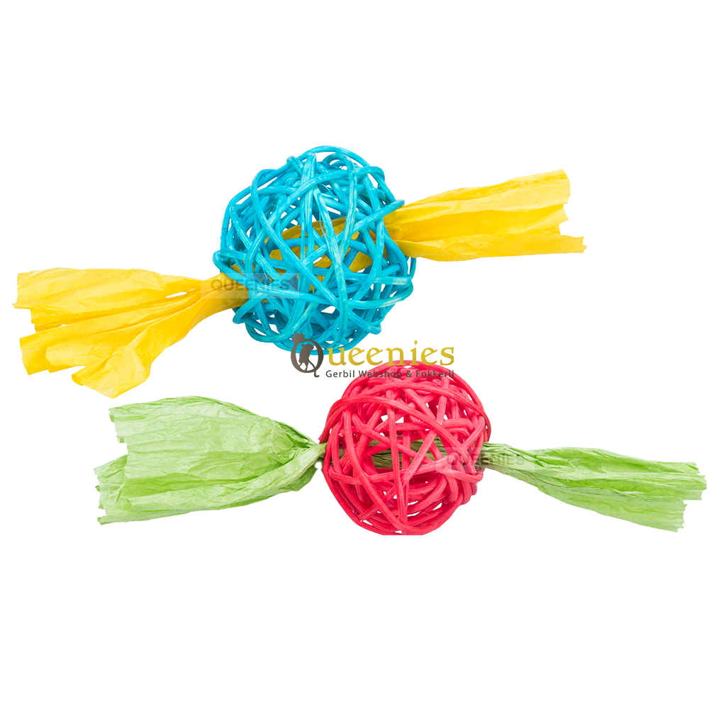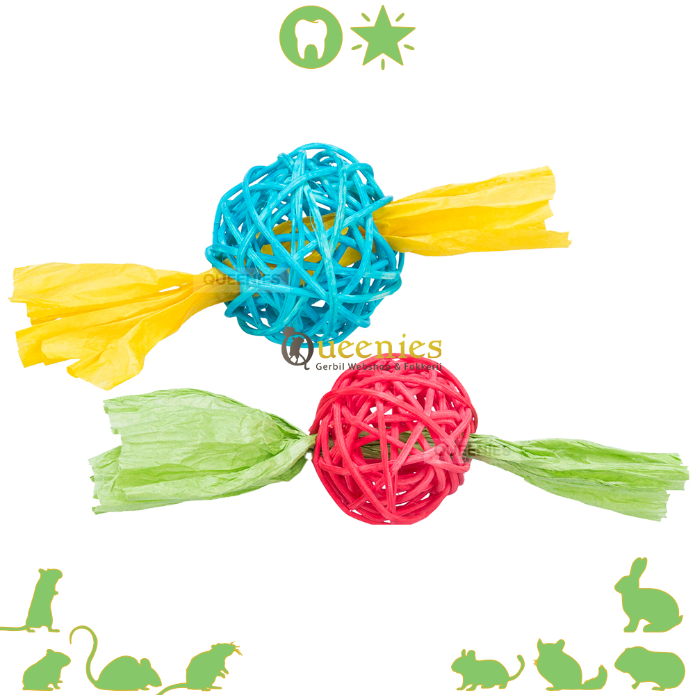 Deze Gekleurde Rotan ballen zijn gevuld met papier wat speciaal is gemaakt zodat Knaagdieren en Konijnen hieraan kunnen knagen en knabbelen. Door het Knagen en Knabbelen helpt dit bij het slijten van de tanden op een natuurlijke wijzen. De Gekleurde Rotan ballen zijn geschikt voor elk soort Knaagdier of Konijnen. Voor kleinere dieren zoals Gerbils en Hamsters kunt u hierin dingen verstoppen zoals snacks of andere kleine verwennerijen. Voor Grotere dieren zoals Konijnen en Cavia’s kunnen de Rotan balletjes rond gooien en er op die manier mee te spelen. Uiteraard geldt ook voor grotere Knaagdieren en Konijnen dat u dit product kunt verrijken met lekkernijen om de Rotan ballen extra aantrekkelijk te maken.