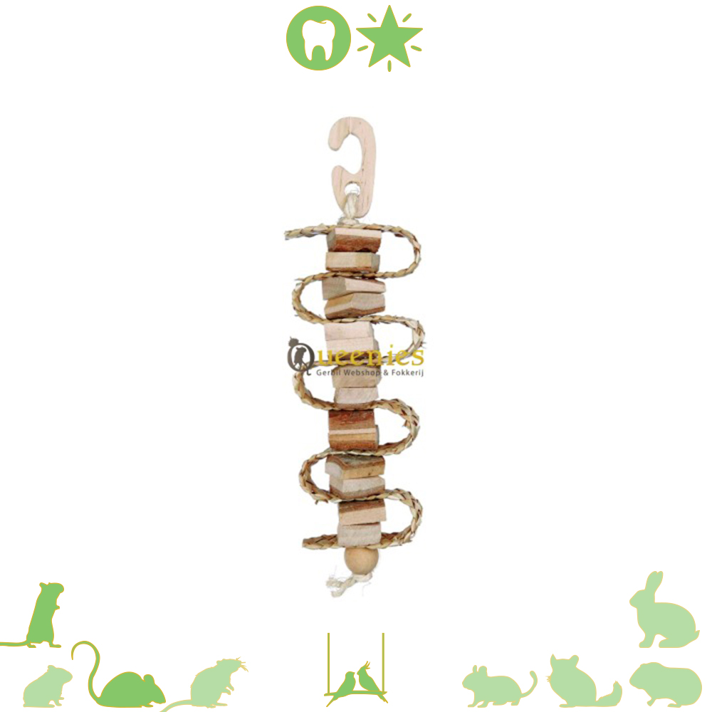 Afmeting: Deze stroband is 30 cm lang Materiaal: Stroband met houten blokjes Geschikt voor: Knaagdieren en Vogels
