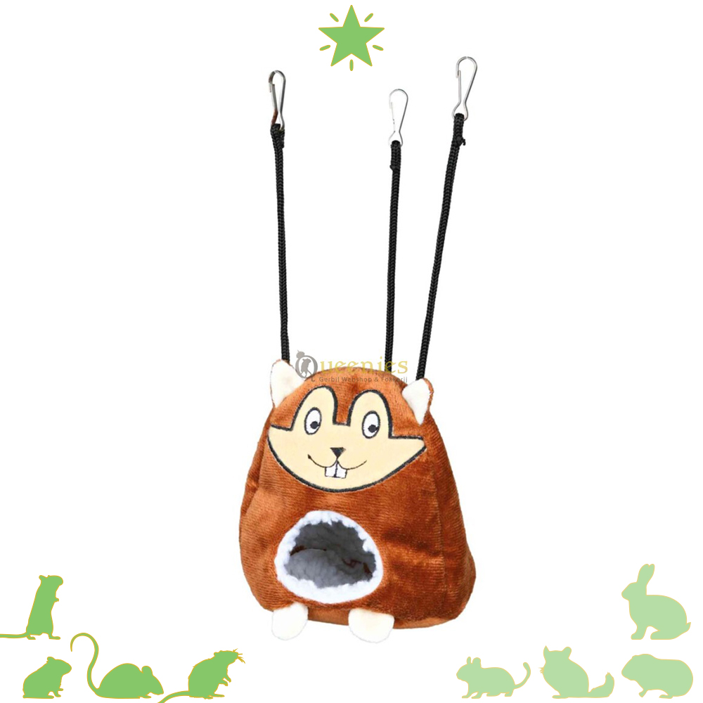 Deze leuke Hangmat Hamster is onzettend zacht en heeft een schattige uitstraling. Een relax Iglo van Trixie. De Hangmat is net als Relax Hang Schuilplaats ook gemaakt van een schapenvacht look. Geen echt schapenvacht dus, maar wel ontzettend zacht door het Pluche materiaal wat gebruikt is voor dit schattige hangende schuilplaats voor Hamsters, Gerbils of Muizen. Bij de productie door Trixie werd gedacht dat het een product voornamelijk voor Dwerg of Goudhamsters zou zijn. In de praktijk zijn dit soort Hangmatten juist veel meer geschikt voro Gerbils omdat zij wel diepte zien en goede klimmers zijn, in tegenstelling tot een Hamster. Gerbils houden ook erg van dit soort zachte mandjes, zij zullen hier vaak hun schuil of slaapplek van maken. Klein punt van oplettendheid is dat het wel kapot geknaagd kan worden door Gerbils. En dan met name het kort. Vervangt u deze direct door ijzerdraad of de ijzeren kettingen.