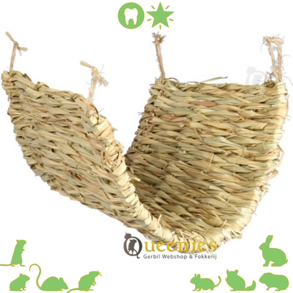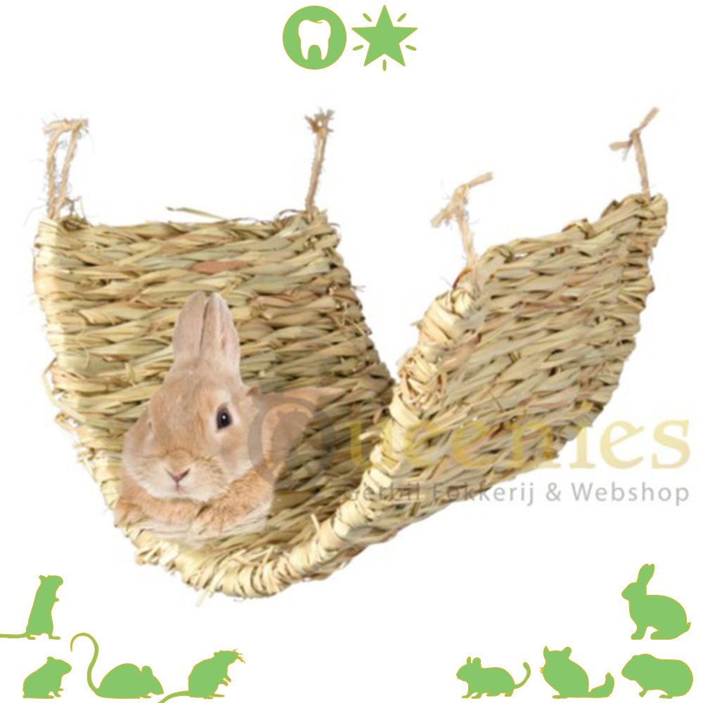 Groot hangmat van gras waar de Gerbils hun rust moment kunnen pakken. De afmeting van de Hangmat van gras kan even schrikken zijn als u het voor Gerbils aanschaft, maar eigenlijk is hij juist ontzettend leuk voor Gerbils. Door de grote van de Hangmat en de structuur van deze gras hangmat zal hij niet direct op geknaagd worden. Wanneer de Gerbils daar wel aan beginnen is het kapot geknaagde materiaal erg bruikbaar voor de stevigheid van de ondergrondse tunnelsystemen die Gerbils hebben gegraven. Niet alleen verstevigd dit dan de tunnels voor Gerbils, maar ook kunnen zij hier een heerlijk en stevig nest mee bouwen. Deze grasmat voor knaagdieren en konijnen ruikt ook nog eens ontzettend lekker. U ruikt de heerlijke pure grasvelden. Niet alleen u ruikt dat, de knaagdieren ruiken dit ook waar zij erg blij van worden.