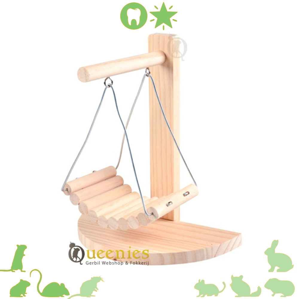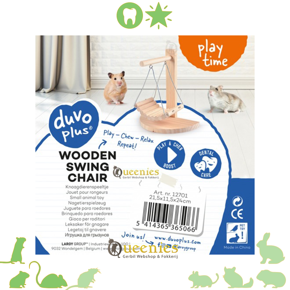 Deze leuke houten schommelstoel van duvoplus is het ideale accessoire voor in je knaagdierenverblijf / gerbilarium. Het gaat verveling tegen, bevordert het natuurlijke knaaginstinct en houdt hun tandjes gezond. De tanden van knaagdieren groeien immers voortdurend. Door het vele knagen houden ze de groei van hun tanden onder controle.