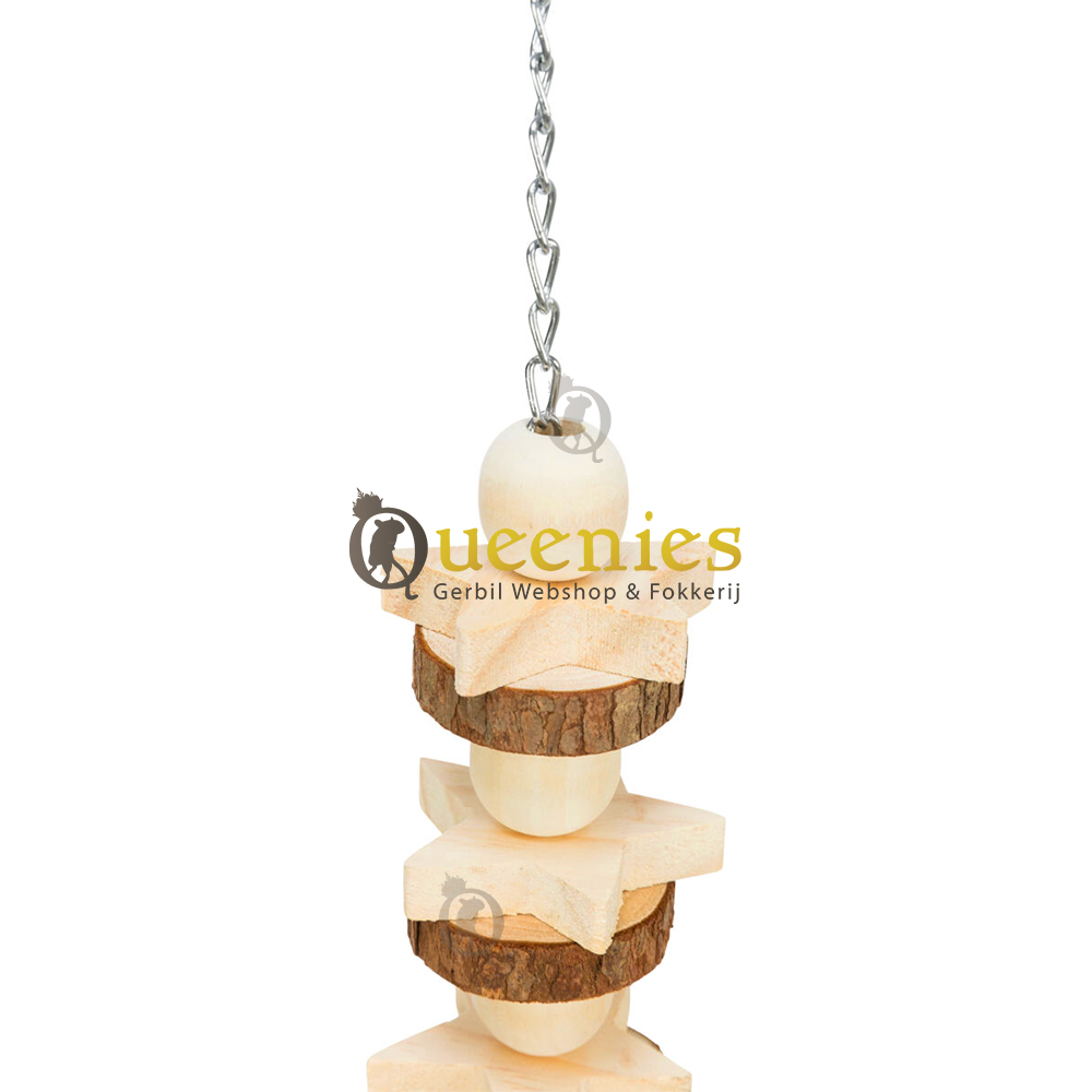 Het Klimtouw met Ketting van 30 cm is Klim speelgoed voor Muizen, Gerbils en Vogels. Origineel is het Klimtouw met Ketting gemaakt voor Vogels, maar goed klimmende Knaagdieren zoals Gerbils vinden het ook heel leuk om met dit soort touwen te spelen. Gerbils kunnen erin klimmen en knagen aan de stukjes hout die aan het touw vast zitten. Voor Vogels zijn de stukjes hout ook bedoelt om aan de kunnen knagen. Dit helpt ook met het slijpen van de snavel en bij de Knaagdieren om de tanden op een natuurlijke manier te laten slijten.