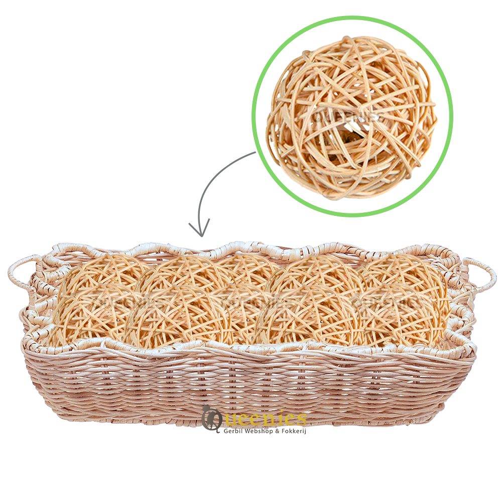 Voor hamsters en muizen biedt de Rotan Bal een interactieve en boeiende ervaring. Het is niet zomaar een bal; het is een speelmaatje dat hen uitdaagt en plezier brengt. Het knagen aan de natuurlijke rotan textuur draagt bij aan hun tandverzorging, terwijl het spel zelf bijdraagt aan hun algehele welzijn.