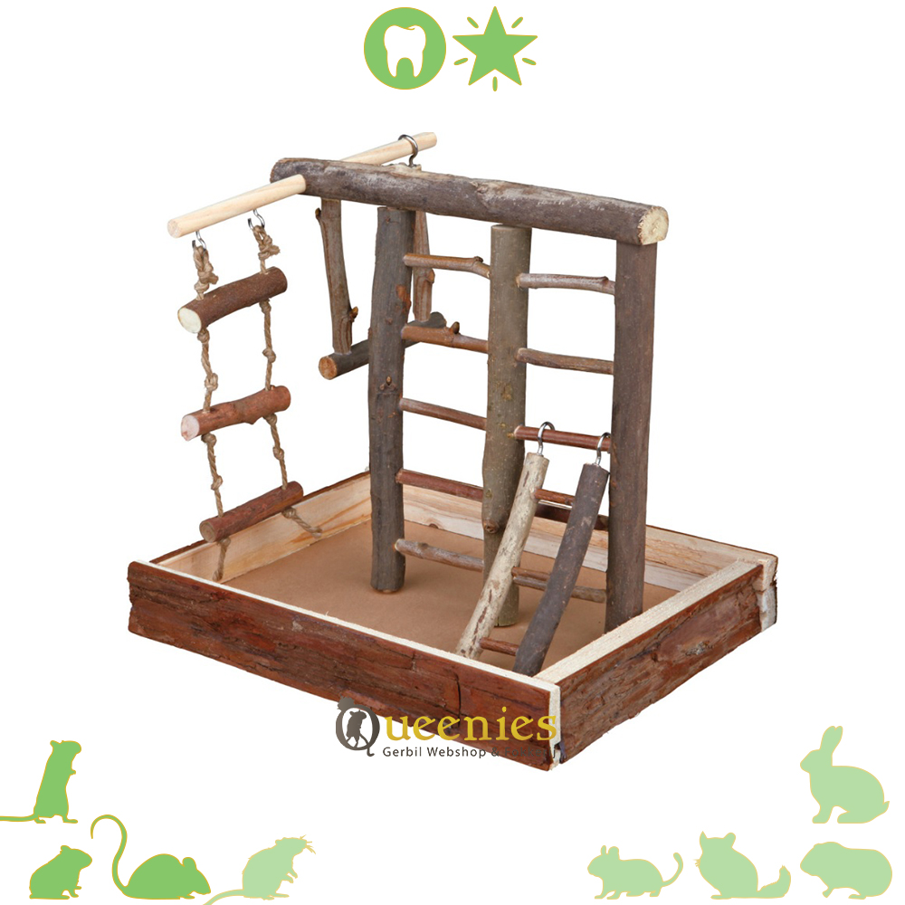 Trappen van Bueren oftewel :Klimspeelplaats 28 cm gemaakt van schorshout. Je zou het ook : 'Opstaande trappetjes' kunnen noemen, vandaar dat we voor de naam: Trappen van Bueren hebben gekozen als titel ;-). Een mooie speelplaats met een ideale afmeting voor ieder gerbilarium
