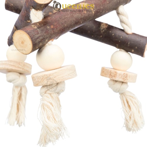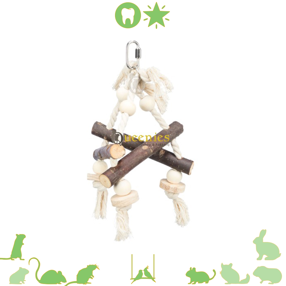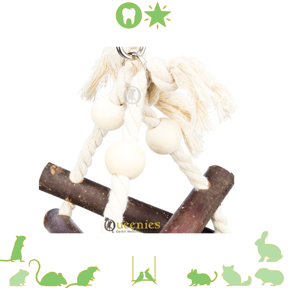 Deze leuke Triangel is een geweldig product voor Knaagdieren die goed kunnen klimmen zoals Gerbils en Muizen. Het is dan een Schommel aan Touw. Doorgaans alleen gebruikt bij Vogels, maar voor Gerbils ook een groot succes. Een speeltouw om in te klimmen en klauteren wat de Gerbils actief zal houden. Het stimuleert het natuurlijke instinct van een Gerbil of Muis en Vogels.